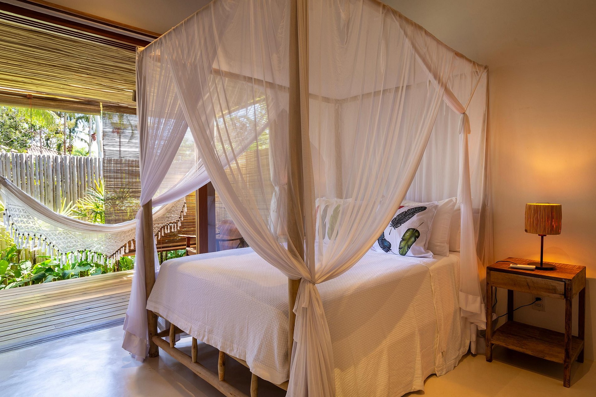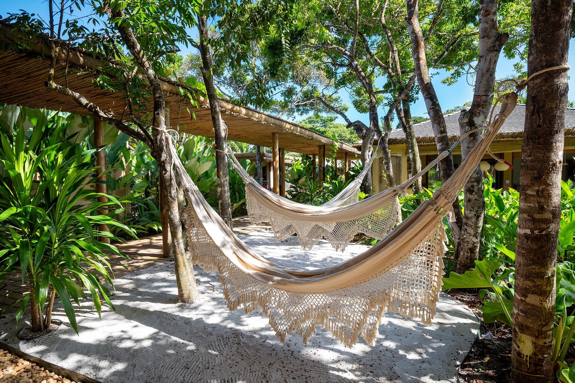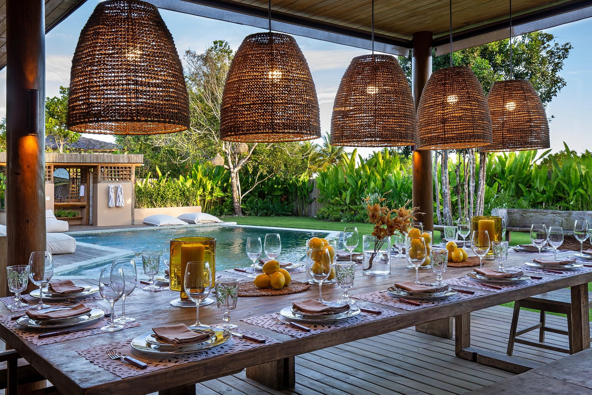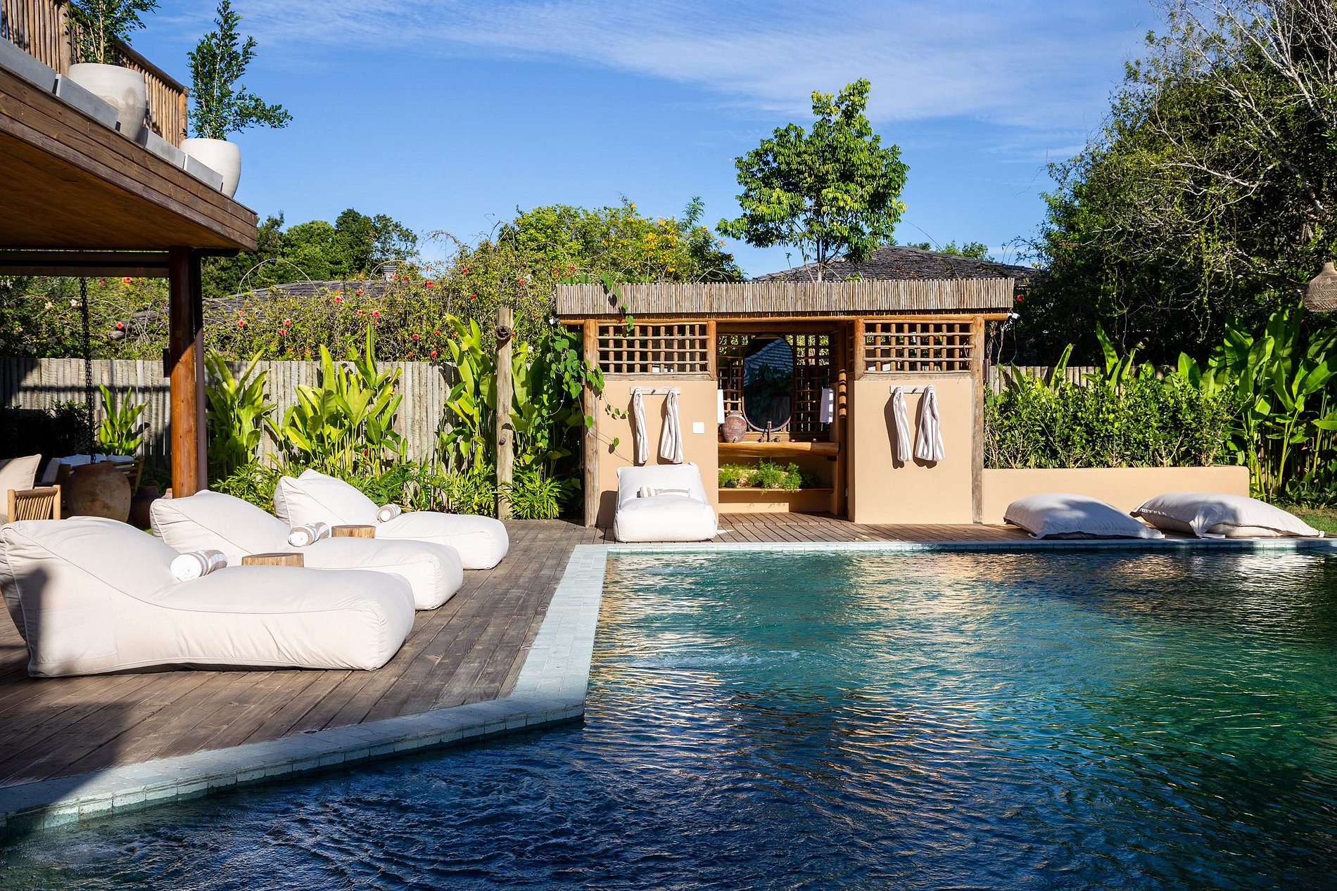 La maison principale comprend un grand salon-salle à manger, une cuisine, une salle de télévision et une suite au rez-de-chaussée. L'étage supérieur comprend trois suites, un solarium, un jacuzzi et un hamac de massage. On y trouve également un espace détente et un balcon avec une piscine à fond vert. La cuisine extérieure est équipée d'un plan de travail avec un évier profond, un congélateur, un congélateur horizontal et une cuisinière industrielle. Un espace gourmand est également disponible avec un barbecue et des glacières à bière. Serviettes de plage et de piscine fournies.