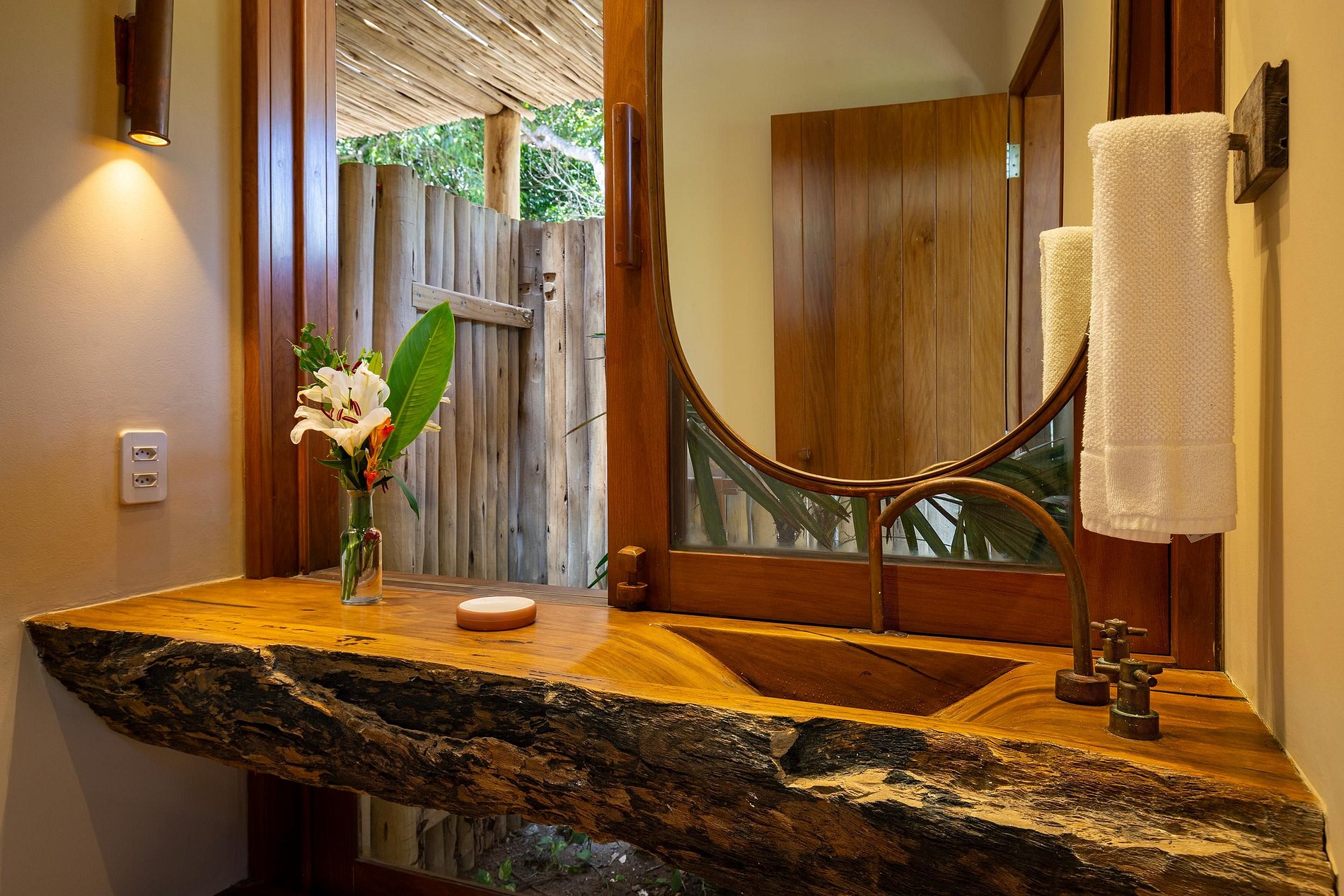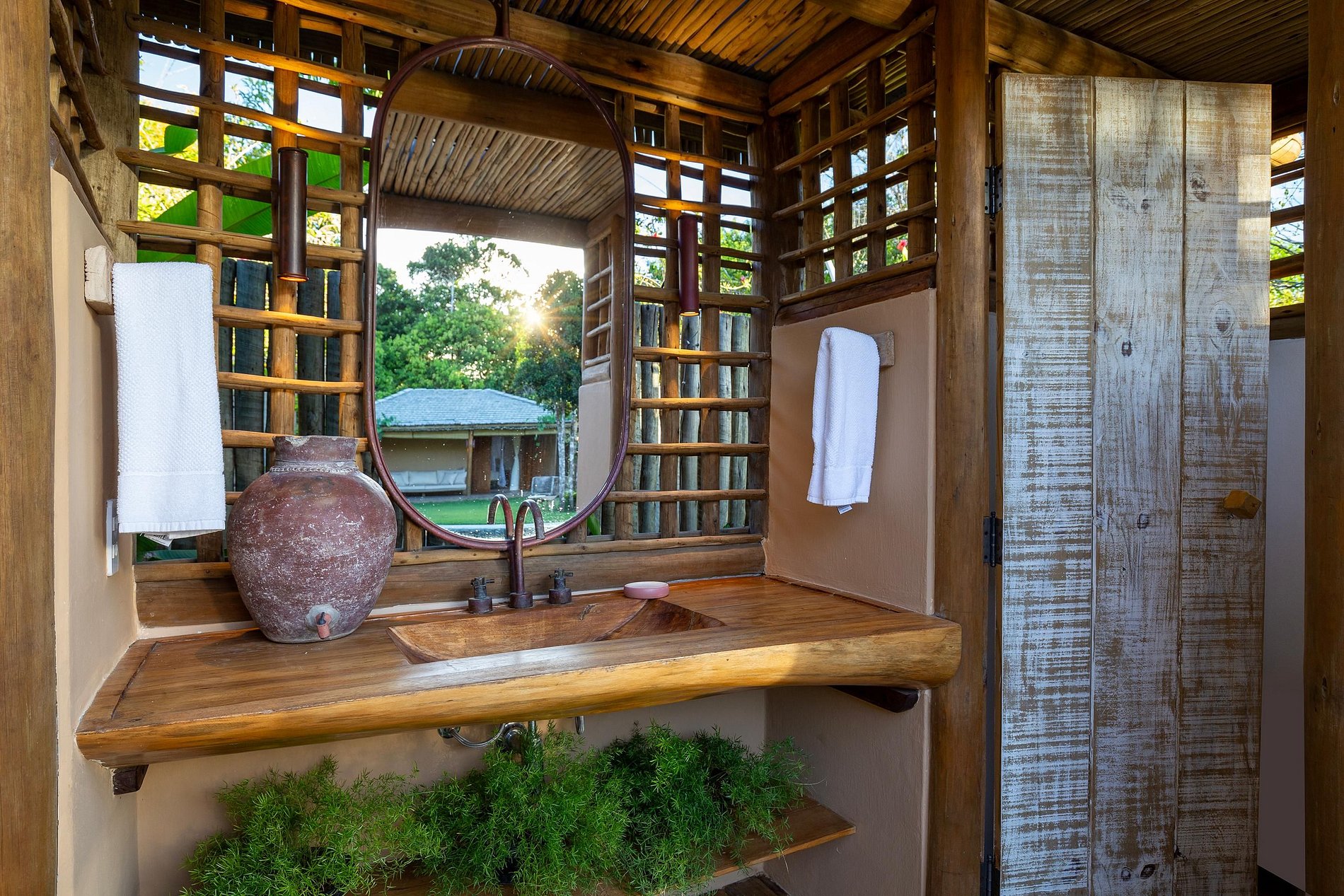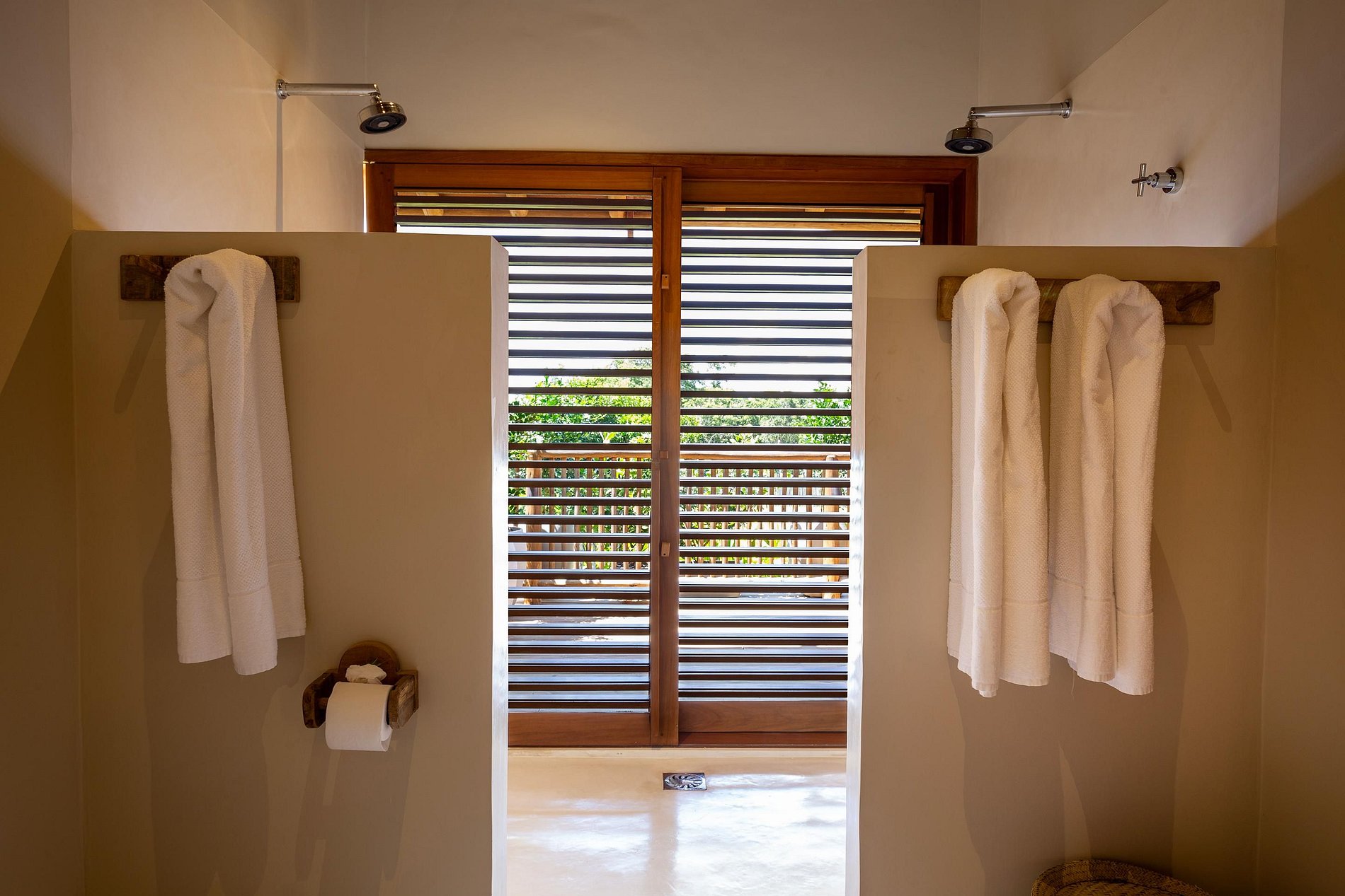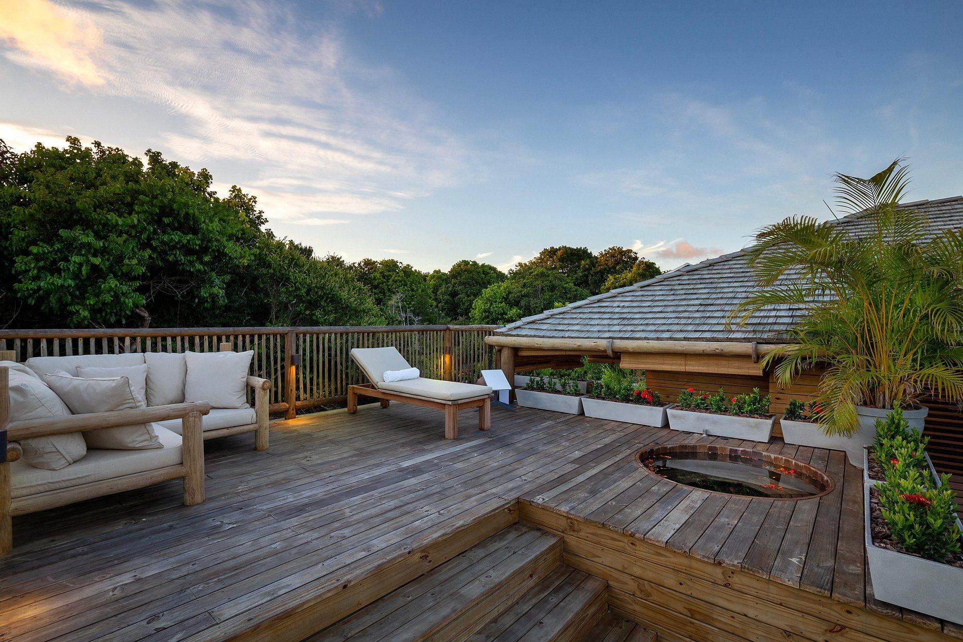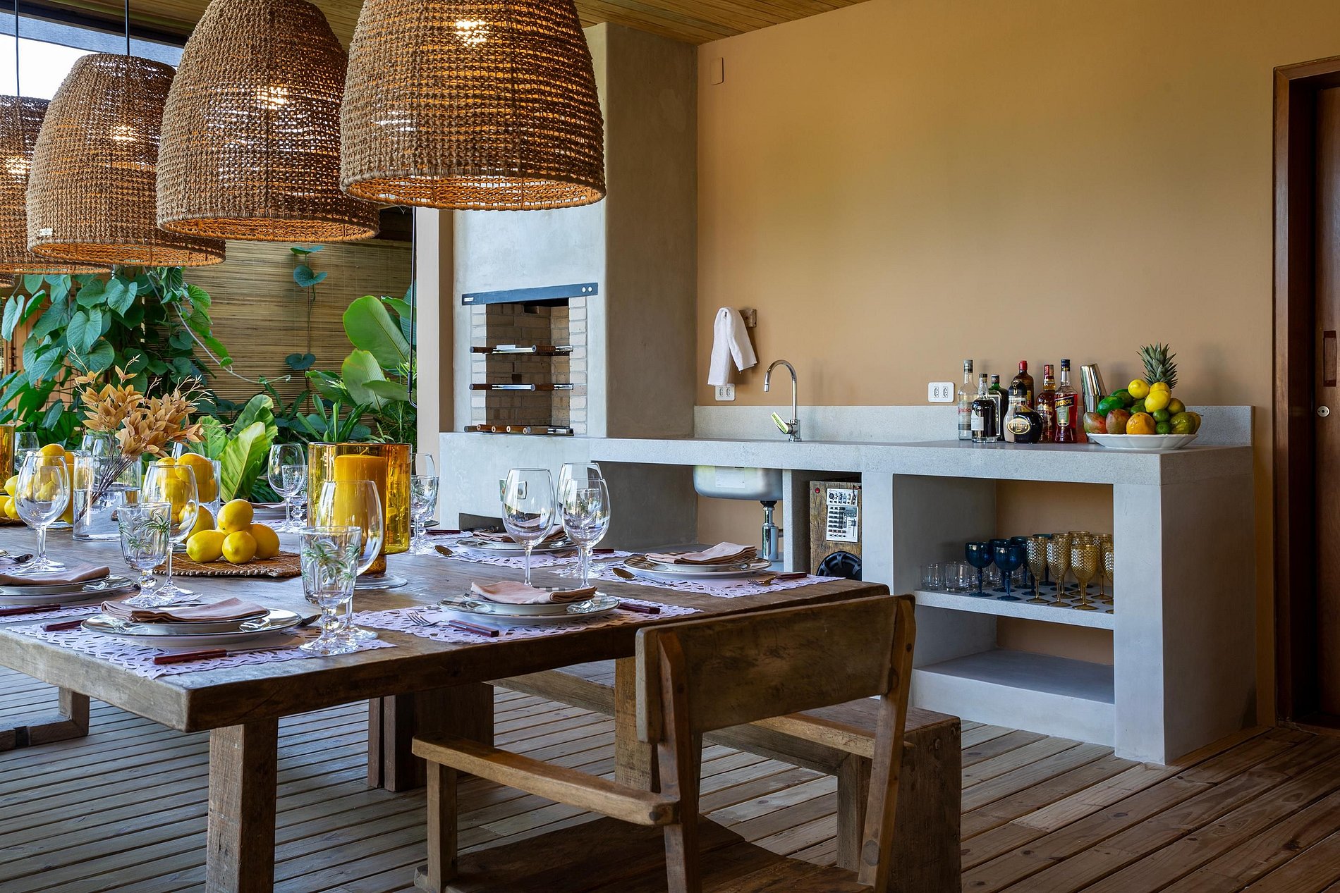 La maison principale comprend un grand salon-salle à manger, une cuisine, une salle de télévision et une suite au rez-de-chaussée. L'étage supérieur comprend trois suites, un solarium, un jacuzzi et un hamac de massage. On y trouve également un espace détente et un balcon avec une piscine à fond vert. La cuisine extérieure est équipée d'un plan de travail avec un évier profond, un congélateur, un congélateur horizontal et une cuisinière industrielle. Un espace gourmand est également disponible avec un barbecue et des glacières à bière. Serviettes de plage et de piscine fournies.