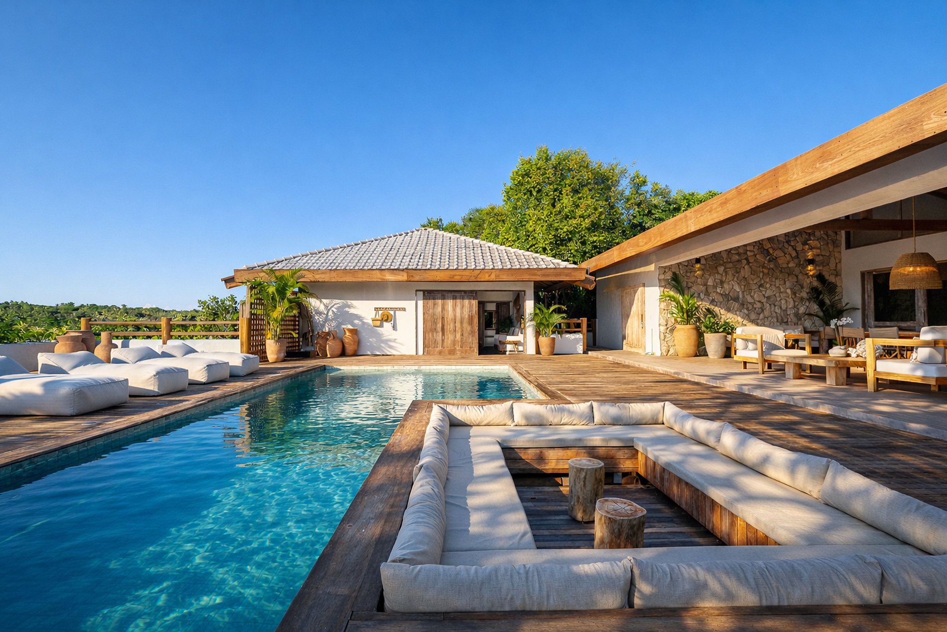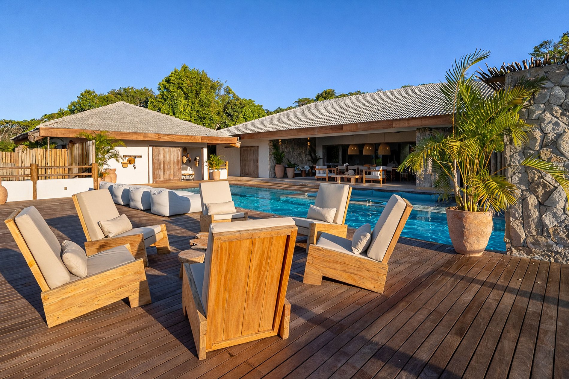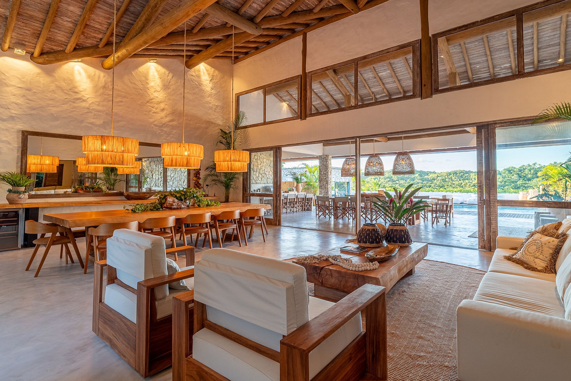 En entrant dans la maison, vous découvrirez un spacieux salon et une salle à manger avec une table pour 12 personnes. Juste à côté se trouve le salon TV climatisé, équipé d'un home cinéma, d'un téléviseur 75 pouces et de canapés confortables. Le balcon, avec ses chaises longues et ses canapés, dispose d'une autre table à manger pour 12 personnes. La cuisine gastronomique est équipée d'un grill électrique, d'une machine à glaçons, d'un refroidisseur à bière, de deux réfrigérateurs et d'un plan de travail avec plaque de cuisson.