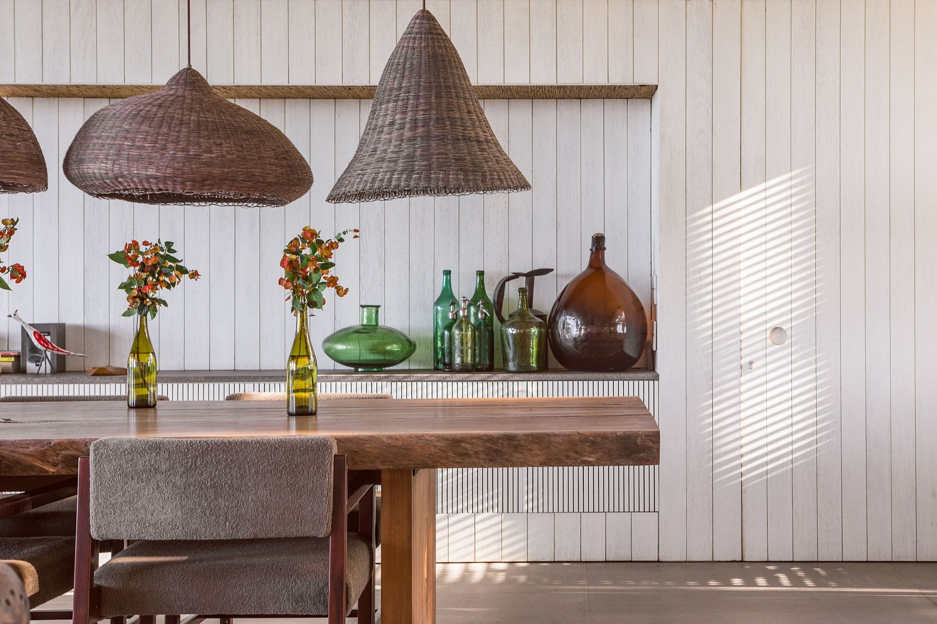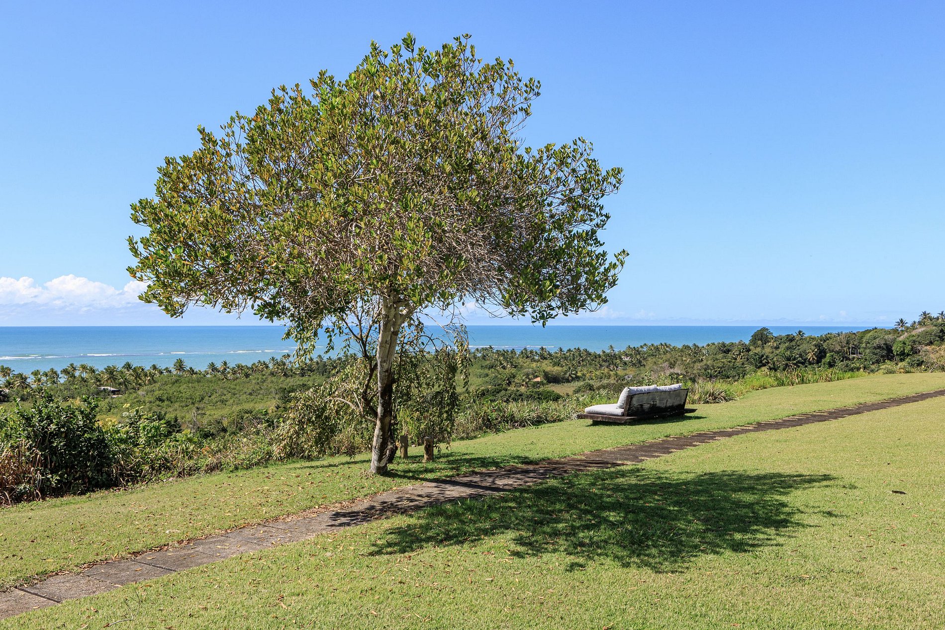 Nichée au sommet d’une falaise de près de 20 mètres de haut, la villa repose sur de solides poutres d’acier qui la protègent des vents marins, donnant l’impression qu’elle flotte délicatement au-dessus du sol. Le résultat est un refuge qui allie grandeur et légèreté, en dialogue constant avec la mer et la nature environnante. Dès l’entrée, les visiteurs découvrent un vaste séjour ouvert de plus de 170 m², où les espaces de réception et de repas s’étendent naturellement vers l’extérieur. Le mobilier, soigneusement sélectionné dans des antiquaires de São Paulo et retapissé dans des tons naturels, évoque une élégance intemporelle en contraste poétique avec le décor tropical. De grands panneaux mobiles en Viroc se replient comme des paravents, effaçant les frontières entre intérieur et extérieur et offrant une expérience sensorielle faite de transparences, de jeux de lumière et d’ombres changeantes. La villa dispose de quatre suites raffinées, toutes conçues pour sublimer la lumière naturelle et offrir des vues imprenables sur la mer. Les larges baies coulissantes s’ouvrent sur les jardins et l’horizon, prolongeant la vie intérieure dans une continuité fluide avec le paysage. À côté du séjour principal, un jardin tropical méticuleusement conçu projette des reflets et des ombres mouvantes à l’intérieur, créant une véritable scénographie visuelle. À la nuit tombée, un éclairage architectural révèle chaque détail et magnifie le paysage luxuriant. L’ensemble compose une atmosphère exclusive, subtile et d’une élégance intemporelle, faisant de cette propriété l’une des plus précieuses de Trancoso.