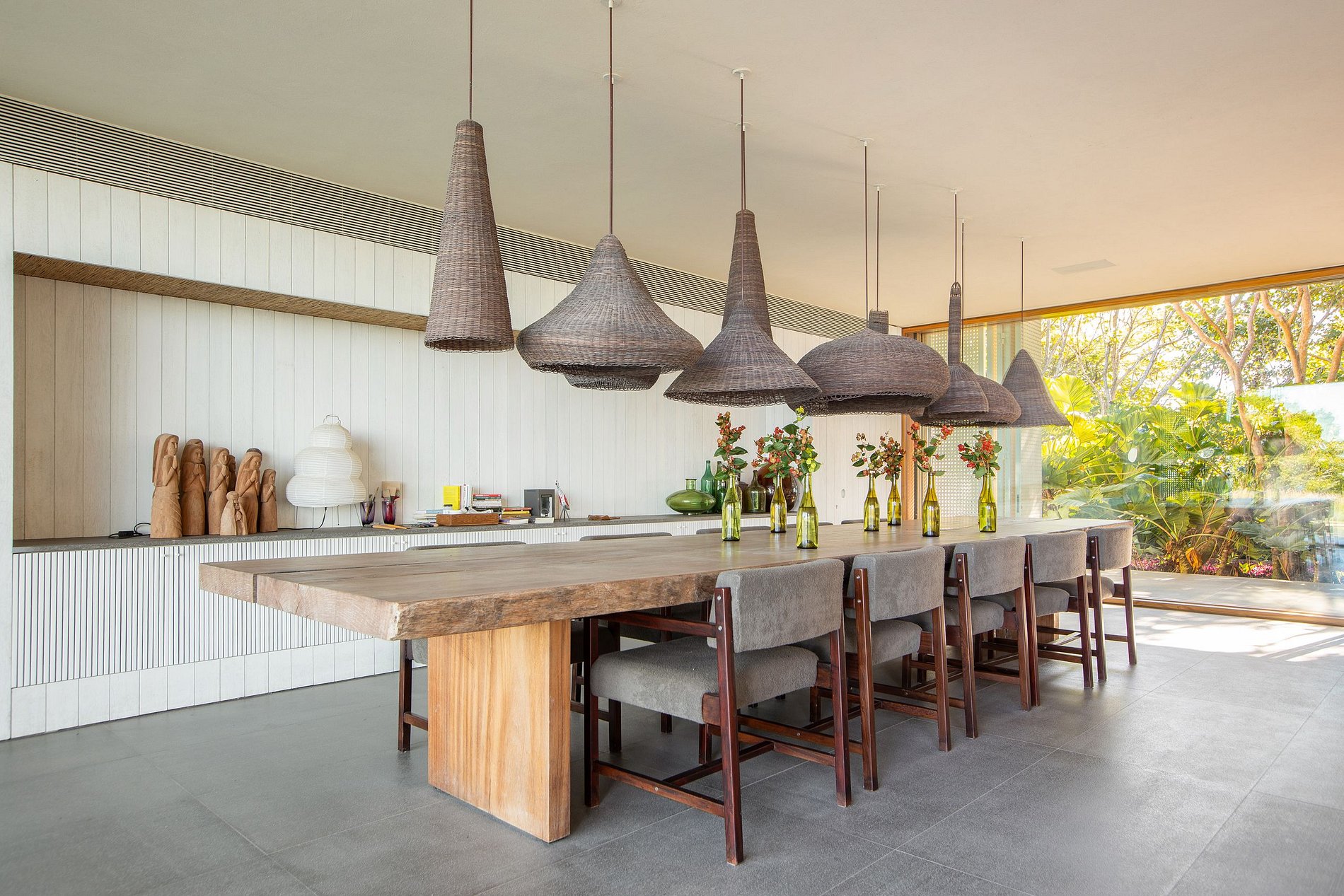 Imaginée par le célèbre architecte Marcio Kogan, du Studio MK27, cette résidence est une véritable sculpture habitée, fusionnant lignes architecturales audacieuses et beauté naturelle de Trancoso. Une parfaite harmonie entre sophistication contemporaine et intégration organique au paysage tropical.
