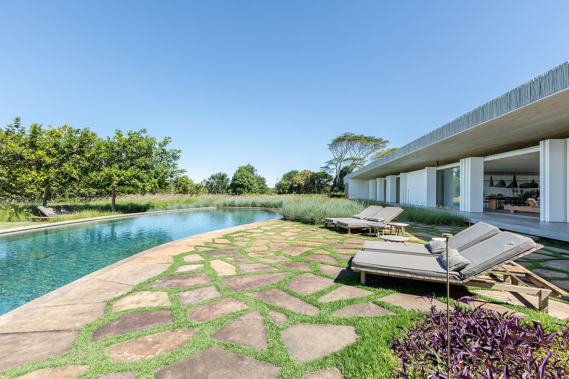 Imaginée par le célèbre architecte Marcio Kogan, du Studio MK27, cette résidence est une véritable sculpture habitée, fusionnant lignes architecturales audacieuses et beauté naturelle de Trancoso. Une parfaite harmonie entre sophistication contemporaine et intégration organique au paysage tropical.