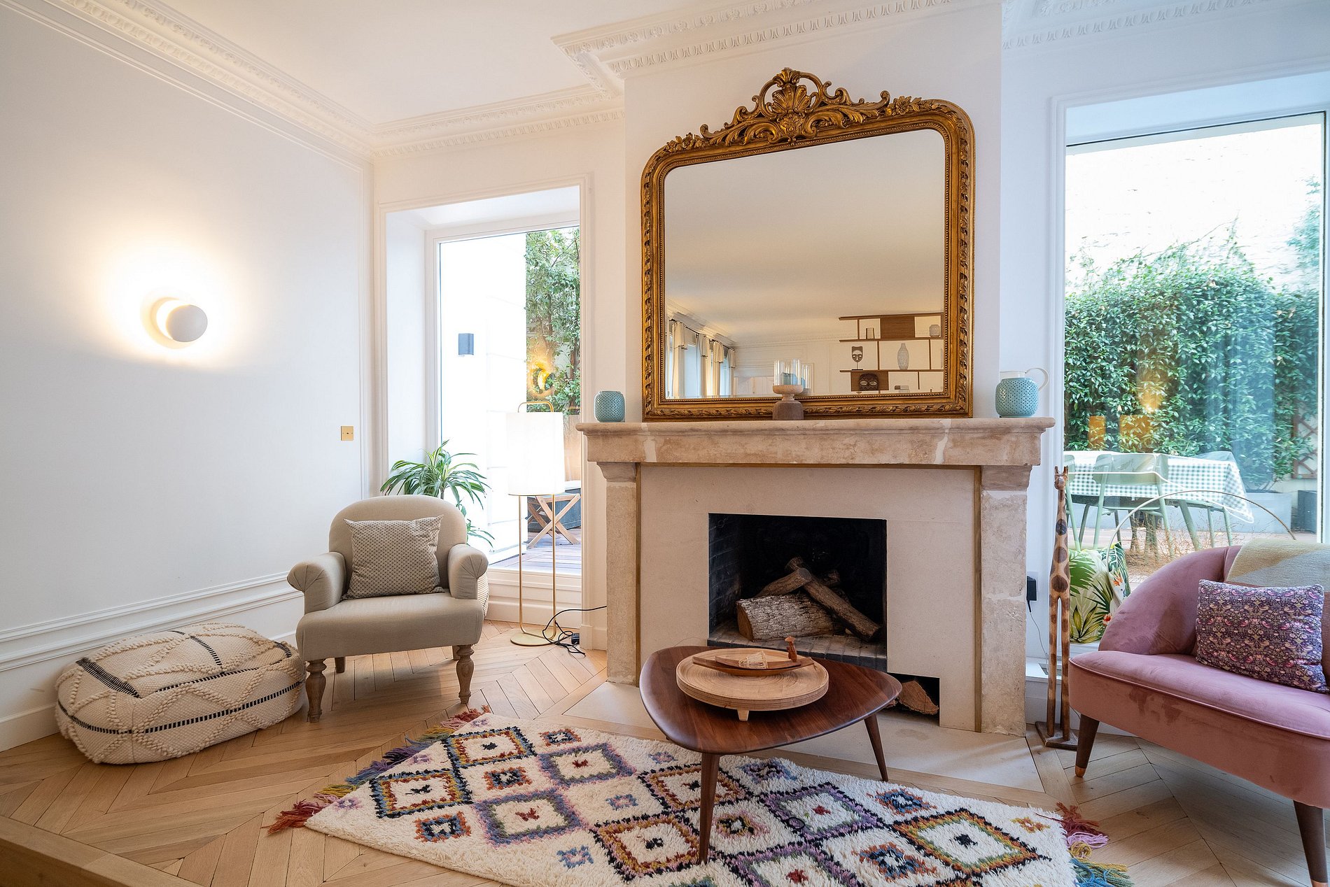 Imagine o luxo de um apartamento parisiense renovado nos mais altos padrões, complementado por um terraço ensolarado no andar superior e um jardim exuberante no térreo.