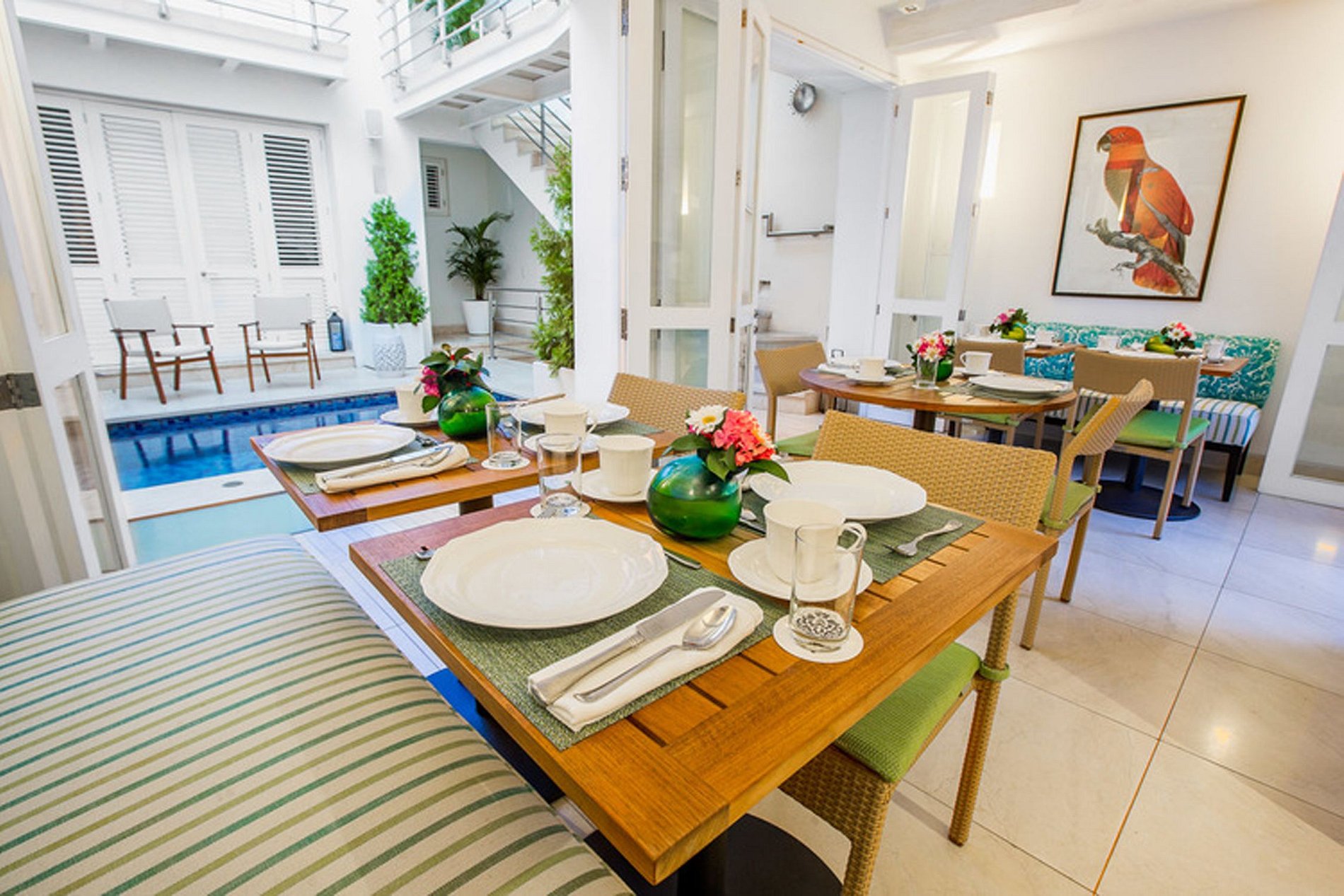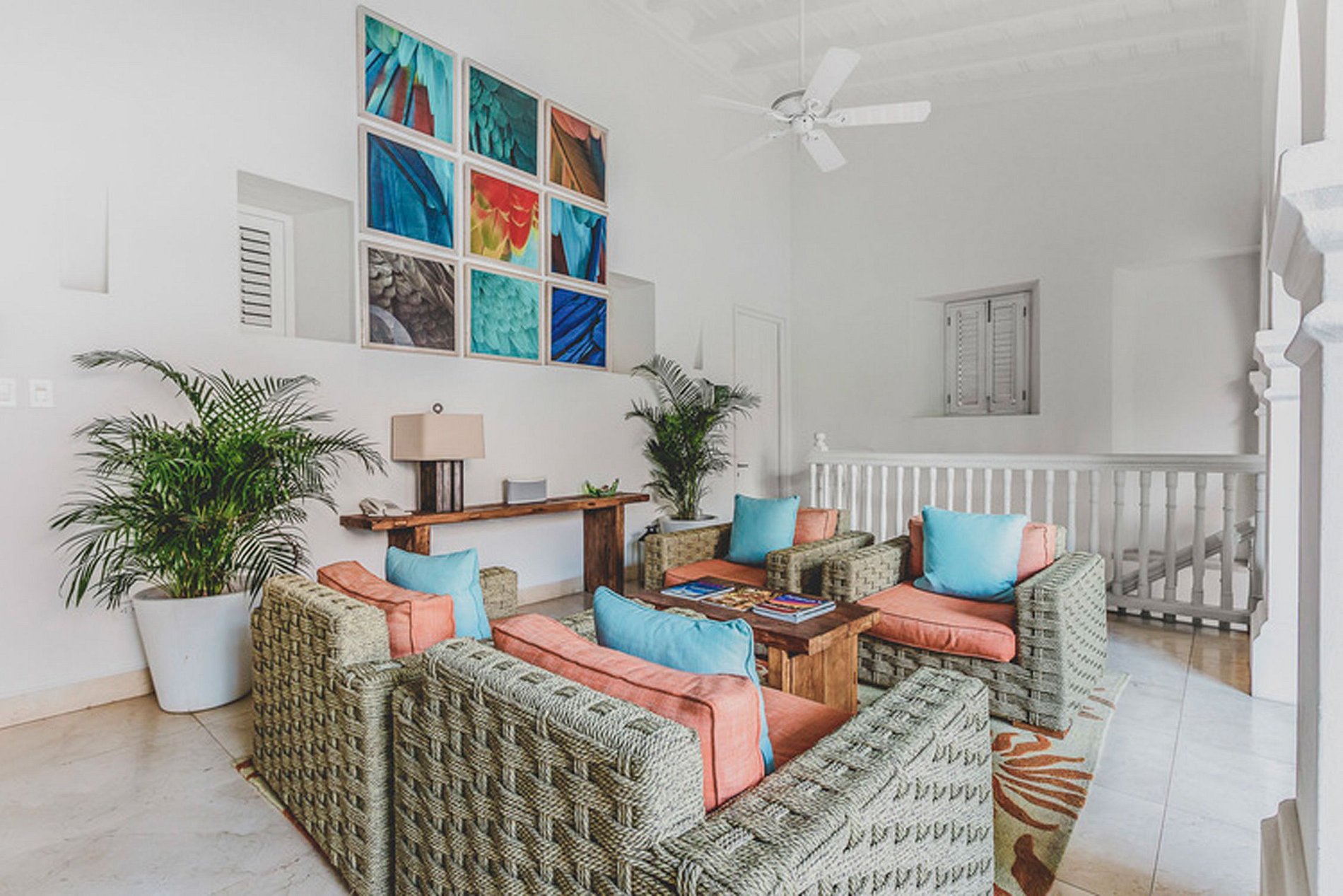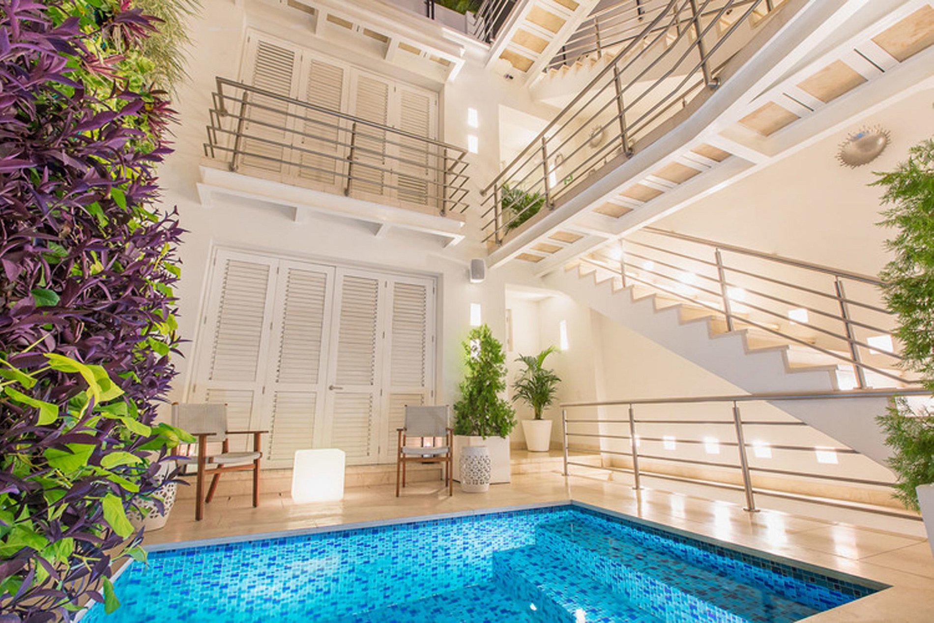 A mansão é uma casa colonial de luxo no coração do centro histórico de Cartagena, na Colômbia, Patrimônio da Humanidade.