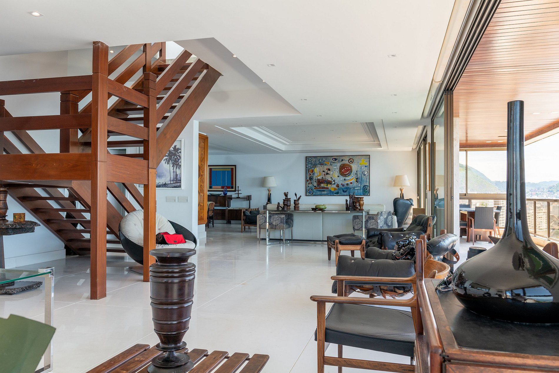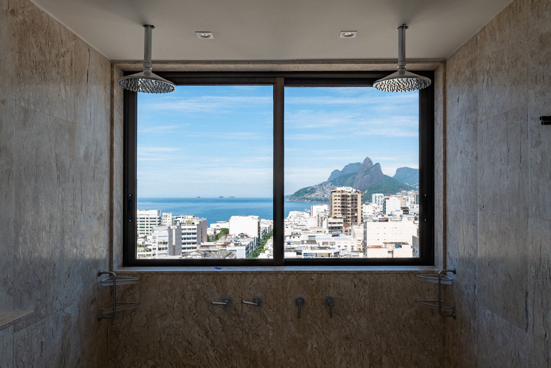 Uma luxuosa cobertura com ampla vista de toda a orla de Copacabana, do forte e ao longe as montanhas que cercam a cidade maravilhosa e oferece a todos uma excelente vista da natureza vibrante do Rio.