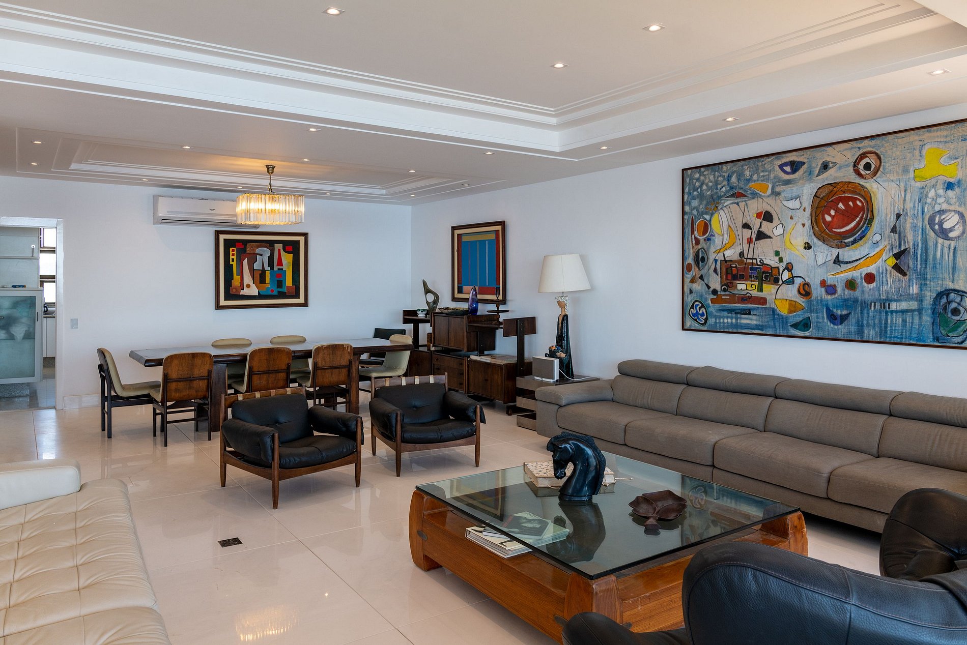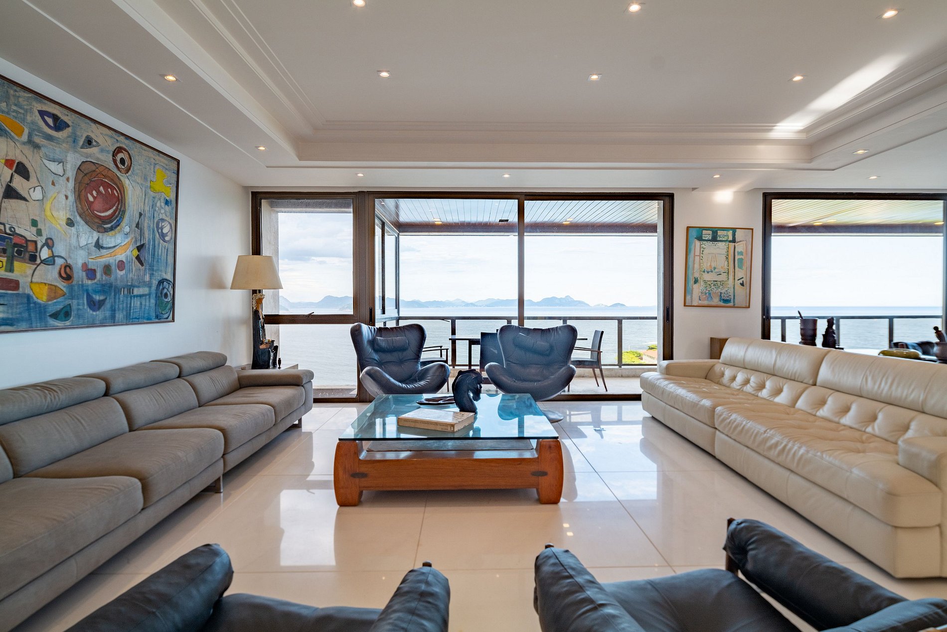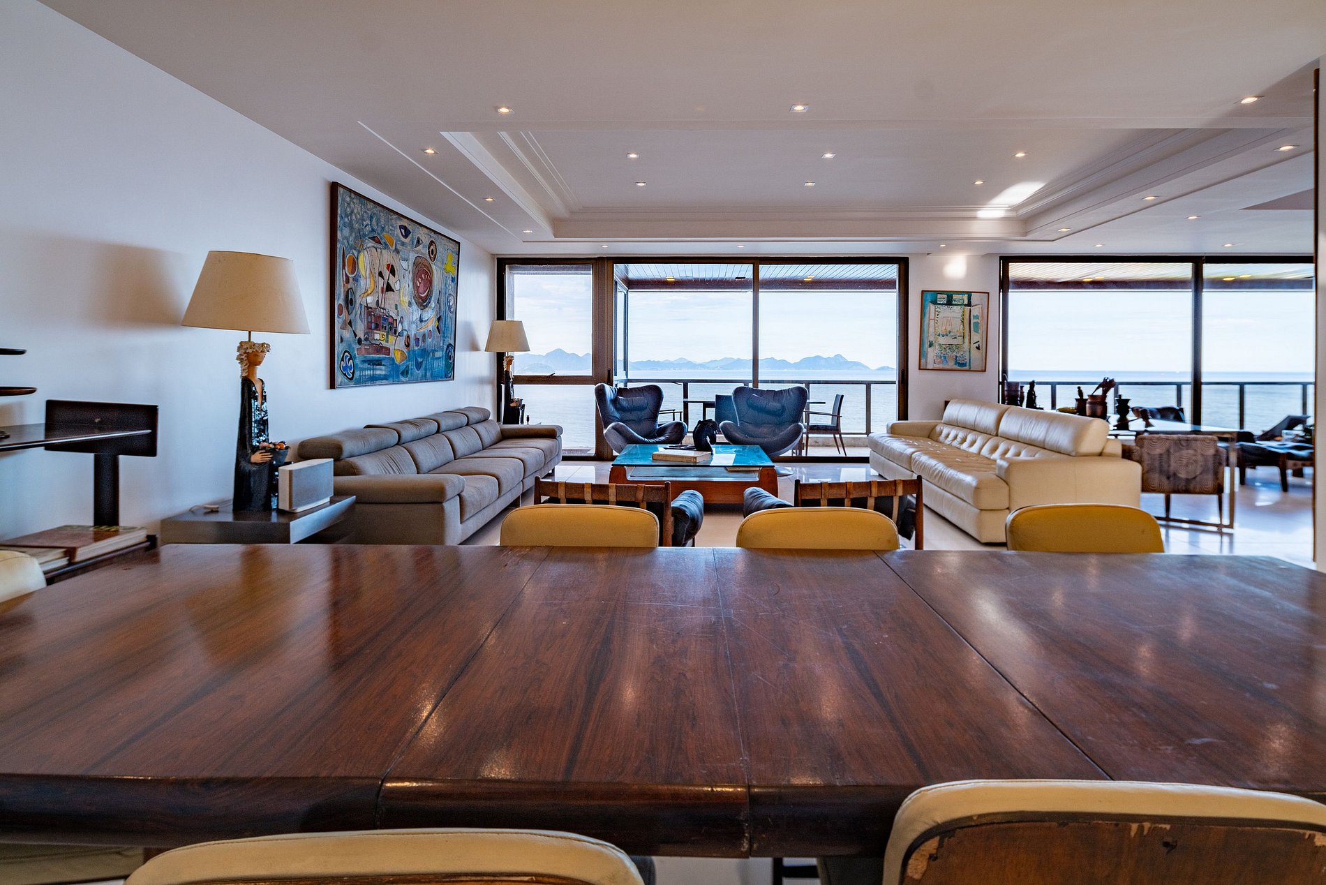 Uma cobertura de 650 m². Este imóvel apresenta 4 suítes espaçosas exibindo vistas magníficas, mais uma suite Master com uma vista de cara para a praia e o forte de Copacabana. Com varandas e salas espaçosas, e uma cozinha em estilo americano muito bem equipada. As vistas do mar, da praia e das montanhas rodeiam toda a propriedade.