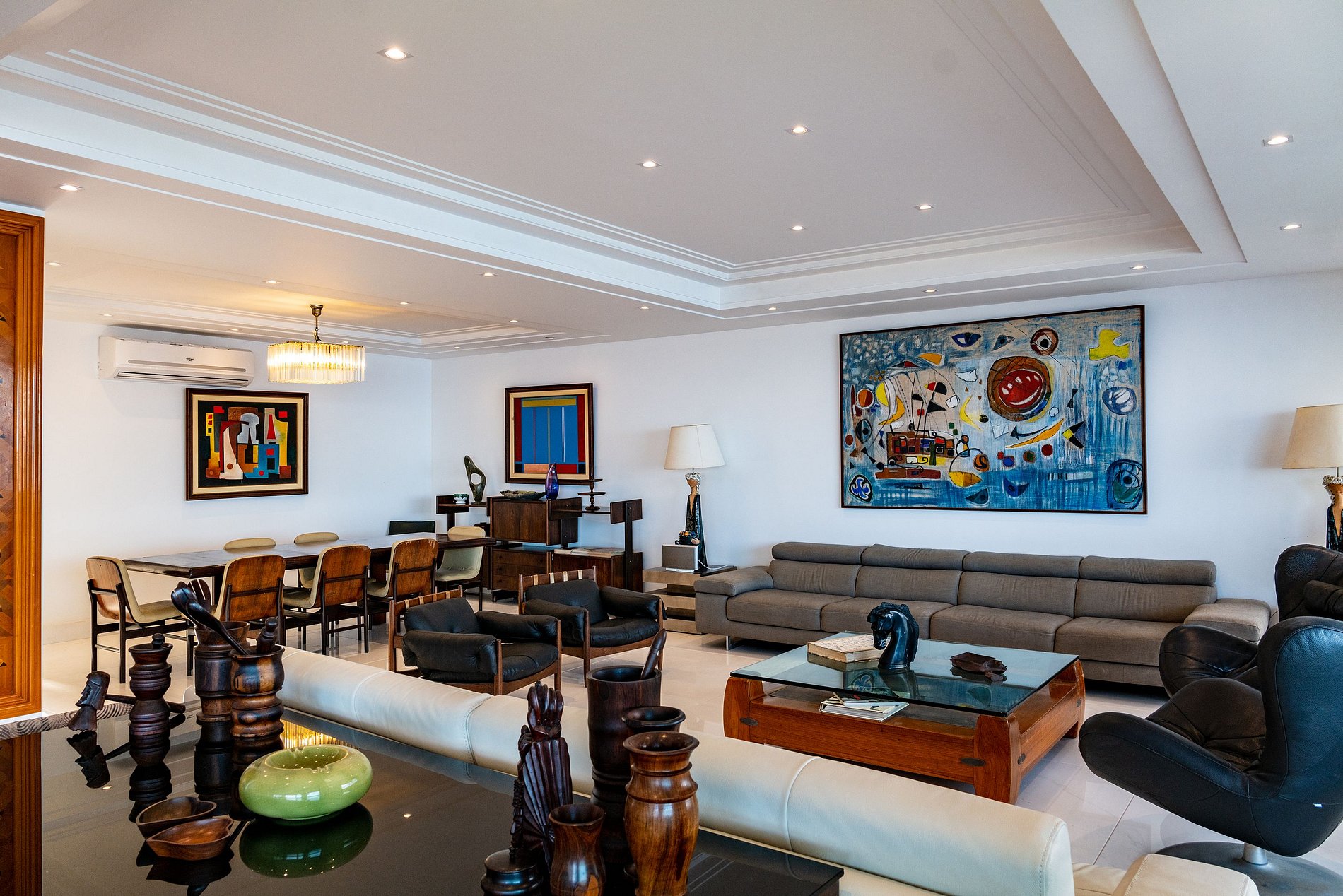 Uma cobertura de 650 m². Este imóvel apresenta 4 suítes espaçosas exibindo vistas magníficas, mais uma suite Master com uma vista de cara para a praia e o forte de Copacabana. Com varandas e salas espaçosas, e uma cozinha em estilo americano muito bem equipada. As vistas do mar, da praia e das montanhas rodeiam toda a propriedade.