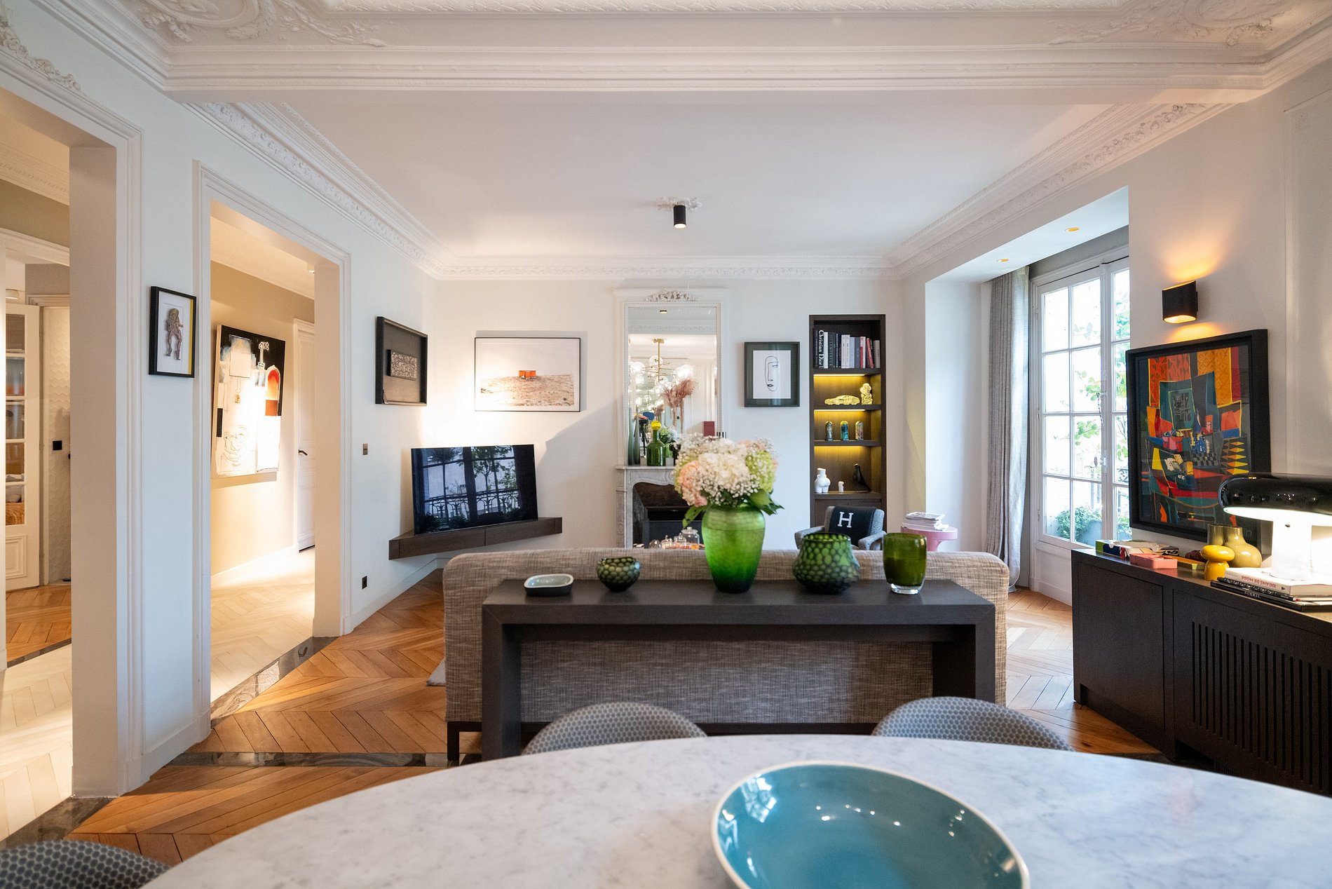 Mergulhe na elegância de um apartamento de luxo meticulosamente renovado por um decorador parisiense renomado, localizado no coração da Cidade Luz.
