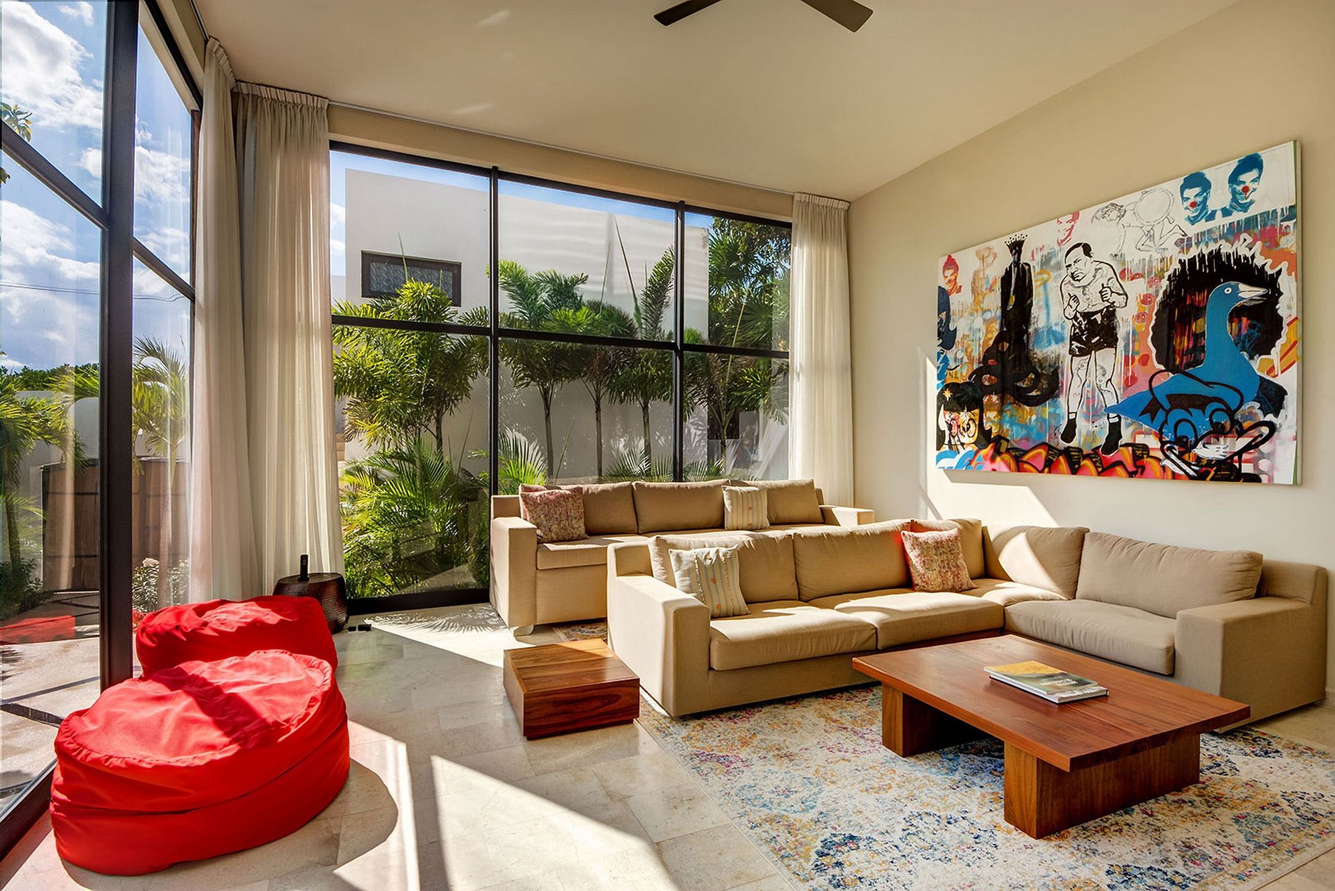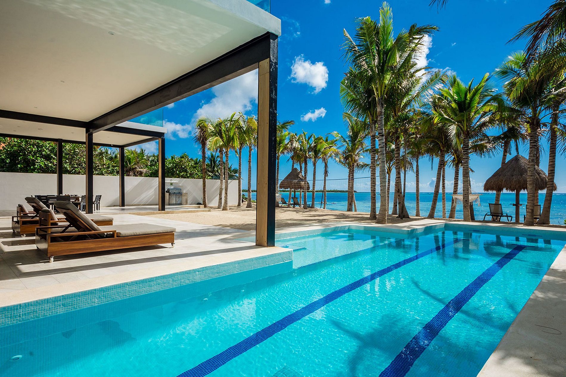 A arquitetura mexicana moderna encontra o estilo de vida arejado à beira-mar, e a combinação é pura perfeição. As linhas elegantes e o clássico esquema de cores em preto e branco da villa são um contraste elegante com o terraço da praia de areia e sua vegetação tropical e palmeiras maduras. As aberturas amplas garantem a brisa fresca do oceano e a luz natural do sol preenche os espaços interiores, abraçando o ambiente altamente desejável de Tulum. A planta baixa de conceito aberto torna esta propriedade um ótimo espaço para hospedar grandes grupos, enquanto áreas menores como academia doméstica, sauna a vapor, sala de mídia, bar molhado e terraço na cobertura garantem que sempre haja algum lugar para ir quando um pouco de privacidade extra é necessária.