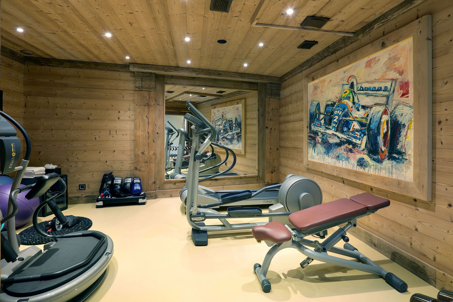 A área de spa privativa do refúgio oferece um mergulho na relaxação e bem-estar. Entregue-se ao encanto da grande piscina aquecida adornada com uma tranquila cascata, ou deixe-se envolver pelo vapor do hammam. Para aqueles que procuram um alívio ativo, a sala de fitness está pronta com equipamentos de ponta. O entretenimento é de suma importância no Chalet Alp002. Cada quarto é um santuário tecnológico com Apple TV e telas LCD, harmonizado com uma atmosfera de perfeição acústica através de um sistema de som BOSE. Além desses retiros pessoais, o chalé abriga uma sala de jogos e um cinema privativo, equipado com um projetor de vídeo de última geração e assentos luxuosos para a noite de cinema definitiva em casa.