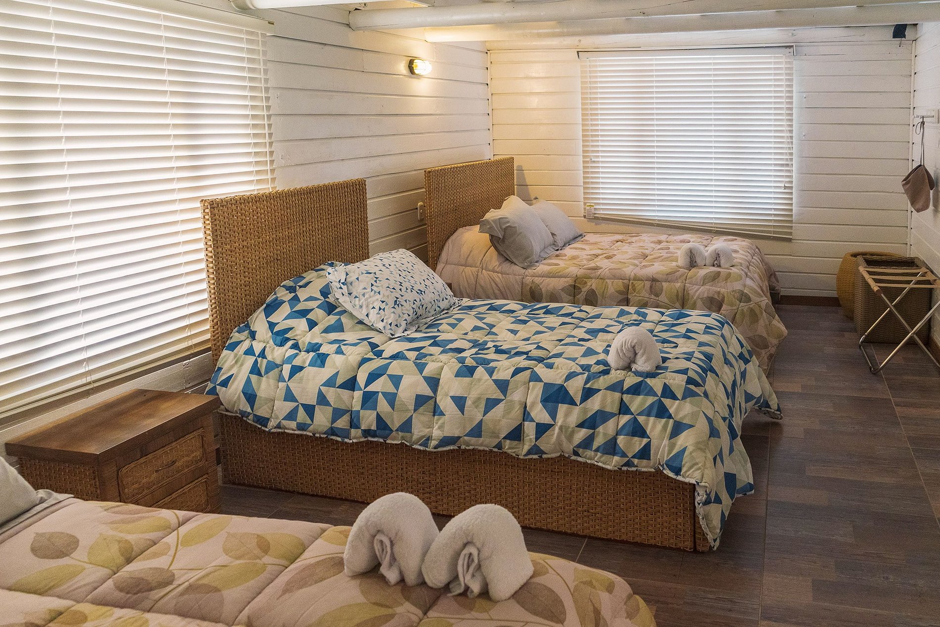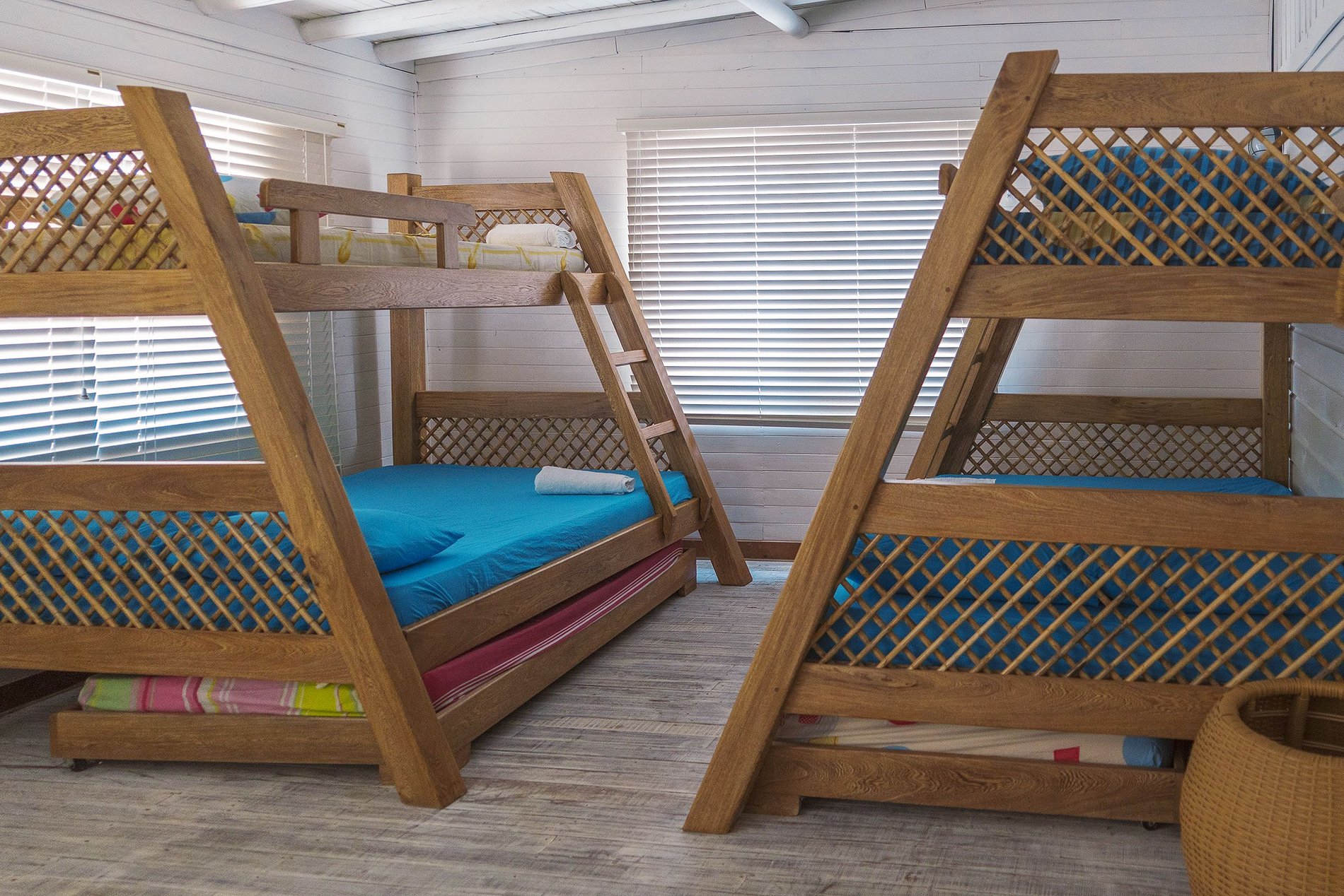 A propriedade foi totalmente construída em madeira tecka e está equipada com todo o conforto que a experiência de ponta requer. Dispõe de 6 quartos: 2 suítes, 2 duplos e 2 quartos familiares, equipados com ar condicionado, Wi-Fi e os melhores padrões de qualidade de conforto.