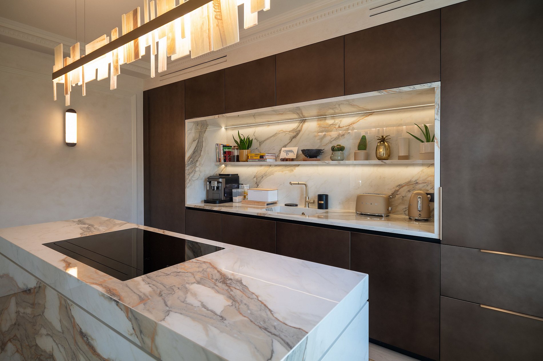Cada ambiente oferece vistas deslumbrantes, enquadrando a linha do horizonte de Paris de maneira que cada olhar pelas janelas capture o encanto da cidade. A luz natural abundante banha o espaço, criando uma atmosfera arejada e convidativa ao longo do dia.