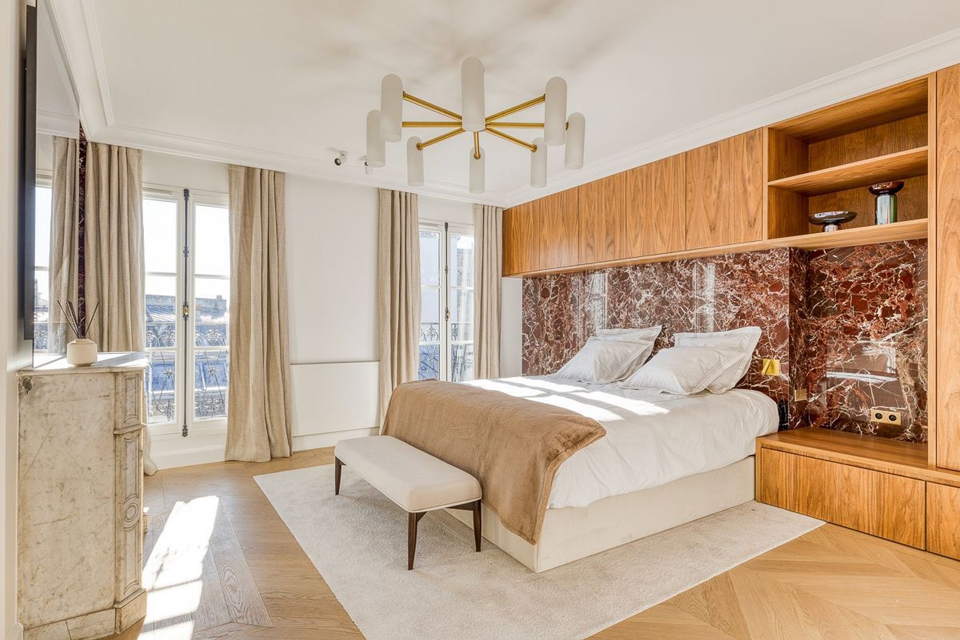 Este duplex excepcional encanta com seus acabamentos de alto padrão, móveis sob medida e varandas com vistas espetaculares. Perfeito para uma estadia de curta duração, combinando prestígio e conforto no coração de Paris.