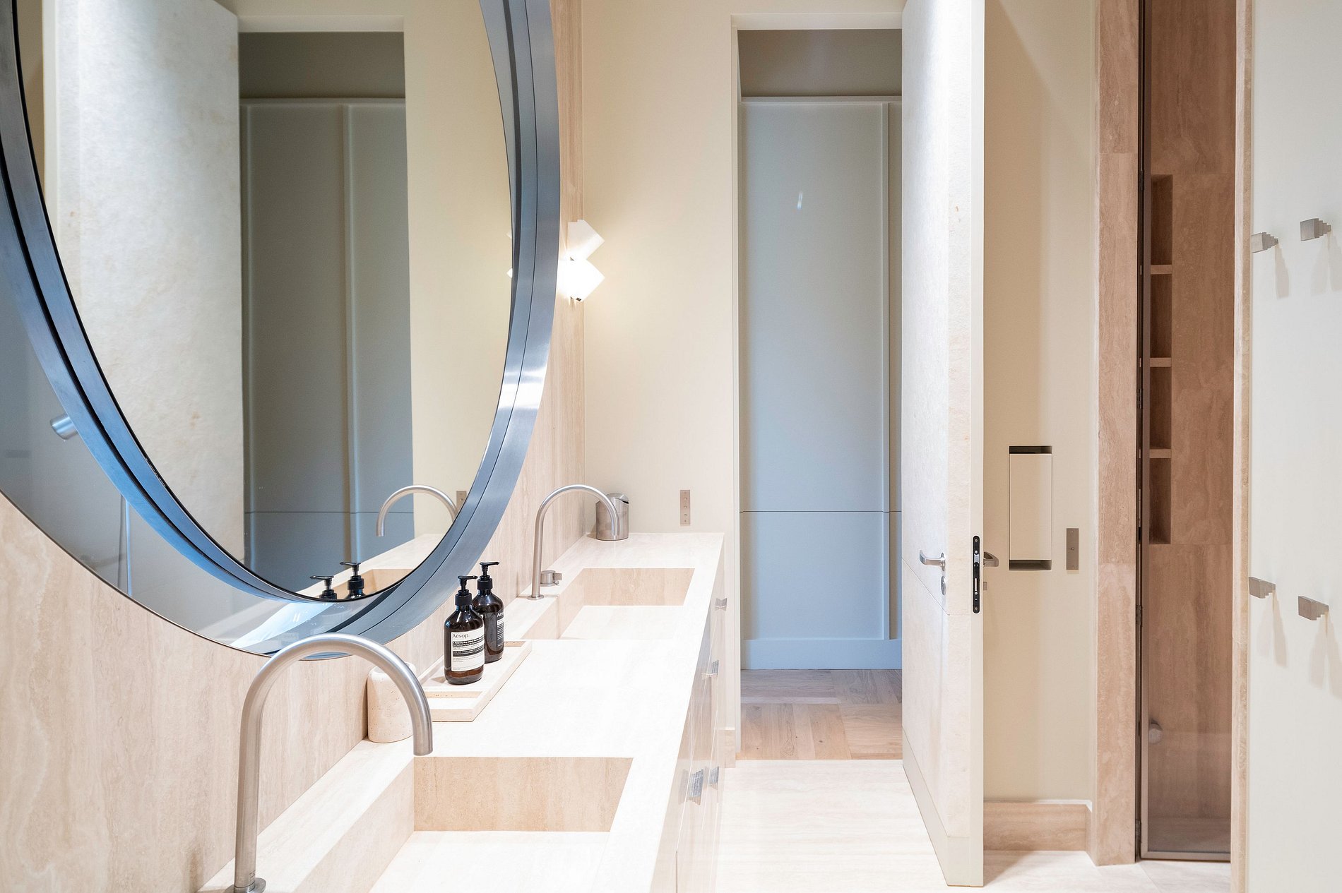 O apartamento dispõe de dois quartos magnificamente decorados, cada um com seu próprio banheiro privativo, garantindo privacidade e conforto. Um dos quartos tem acesso direto a uma esplêndida varanda, uma característica única que realça a experiência de moradia.