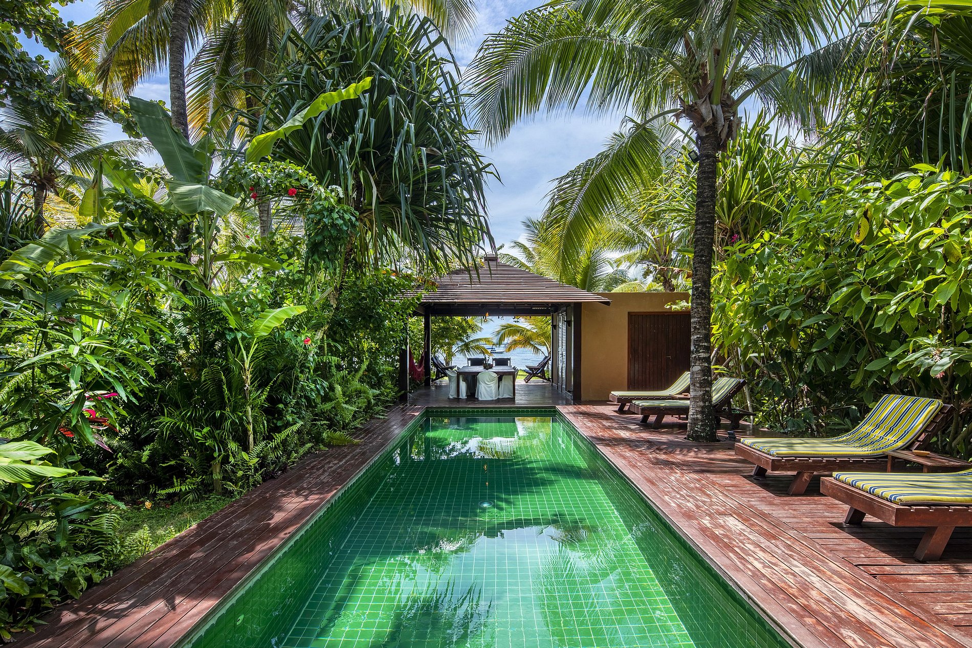 Sua linda, piscina, ampla área gourmet e espaço lounge em frente a praia de águas mornas e transparentes da baía de Camamu, são convites prazerosos de celebrar a vida.