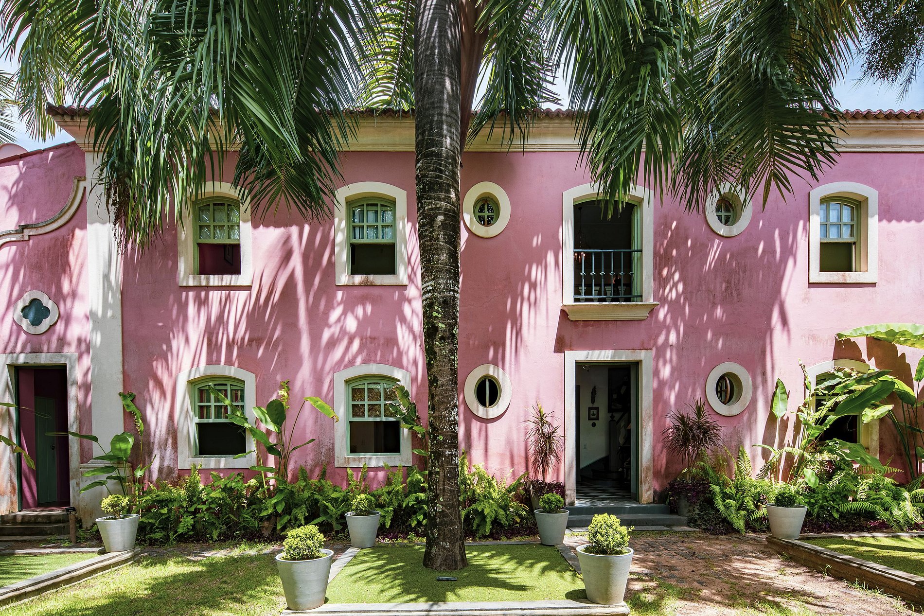 A beleza dessa propriedade cuidadosamente decorada e do seu jardim tropical luxuriante, resulta numa morada glamorosa regada a todos os confortos da arquitetura do Brasil antigo.
