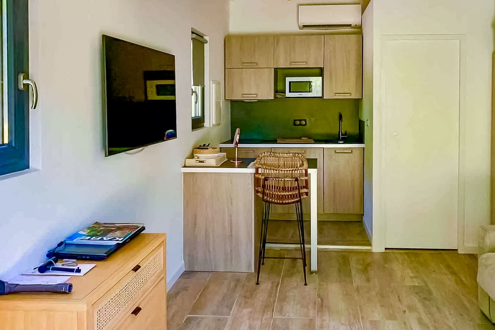 A vila também possui 4 quartos com camas de casal, cada um com seu próprio banheiro, incluindo um quarto independente para amigos, com cozinha totalmente equipada e máquina de lavar roupa. Todos os cômodos da casa têm ar condicionado e aquecimento, bem como fibra ótica e wifi de alta qualidade.