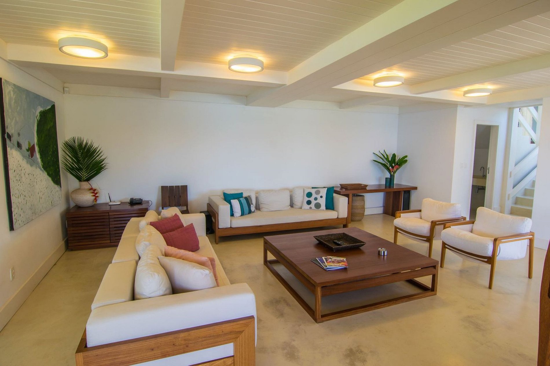 Espetacular casa em cima de uma colina tropical, com vista sobre a floresta, mar e praias de areia branca. Acomoda até 12 adultos. A suíte master no último andar tem uma área de trabalho, um closet e uma varanda privativa mobiliada de frente para o mar. A casa ainda tem mais duas suites. E mais dois quartos que dividem o banheiro.