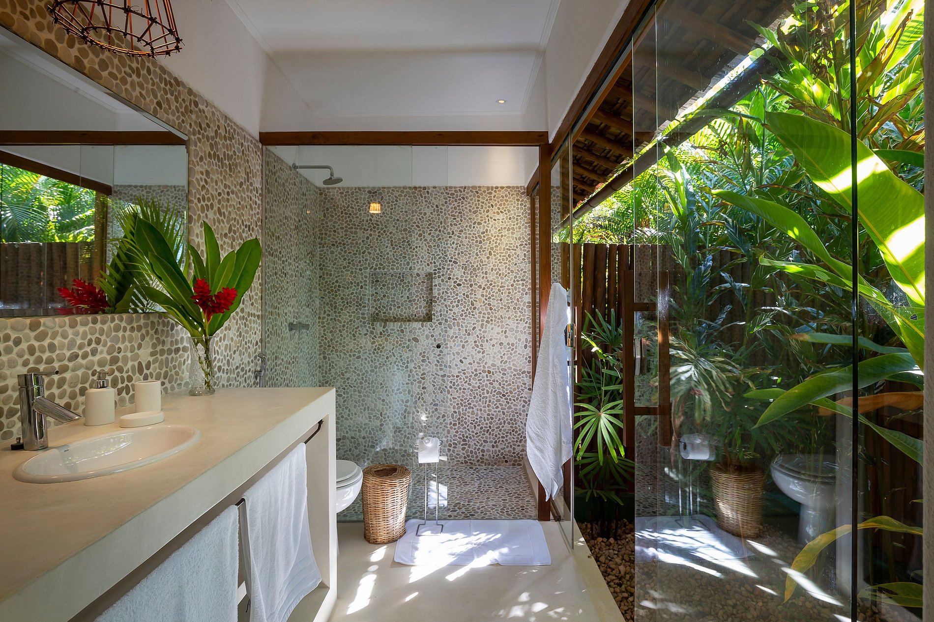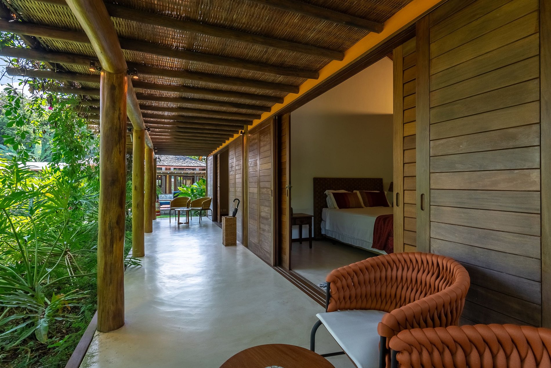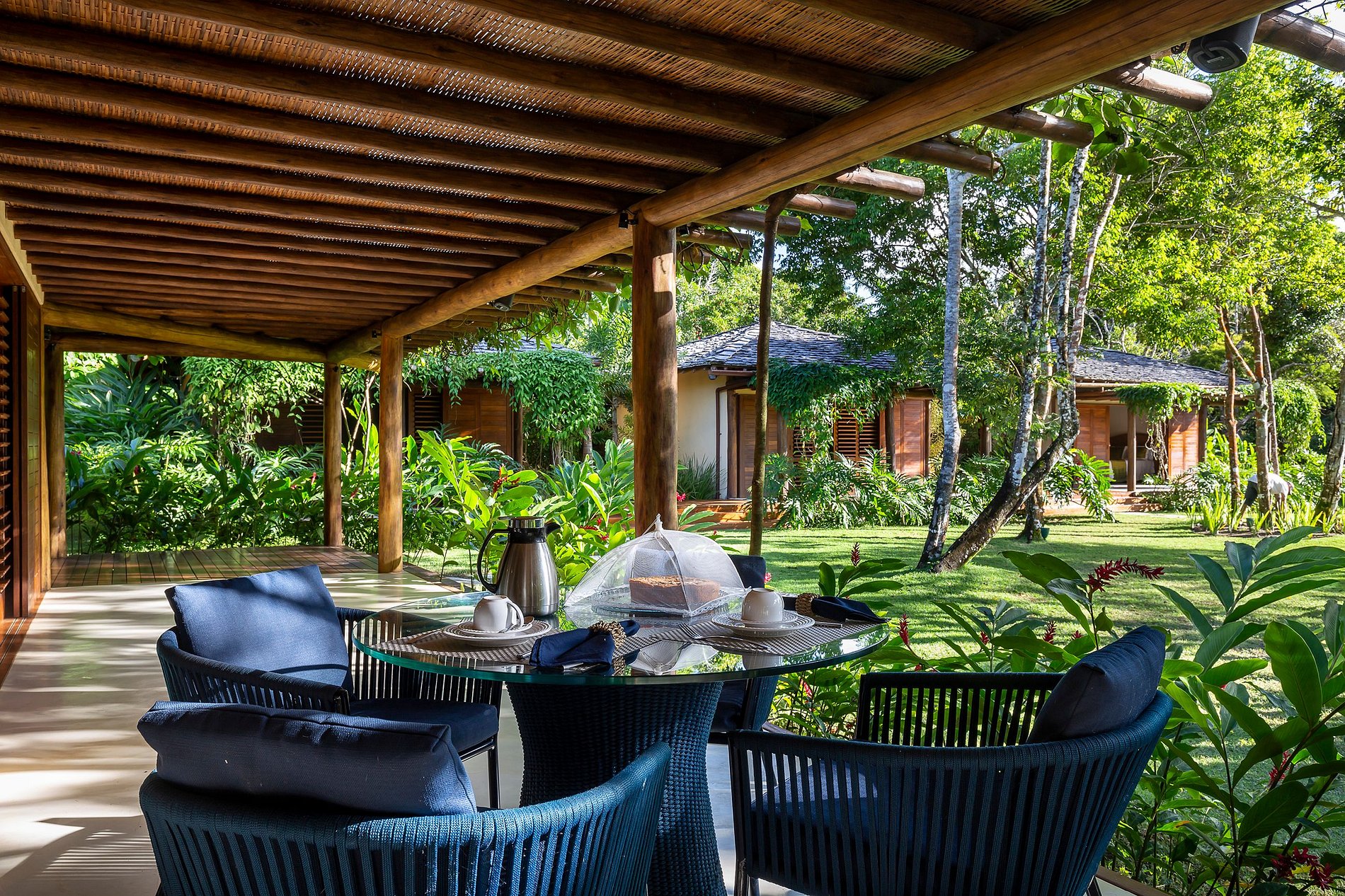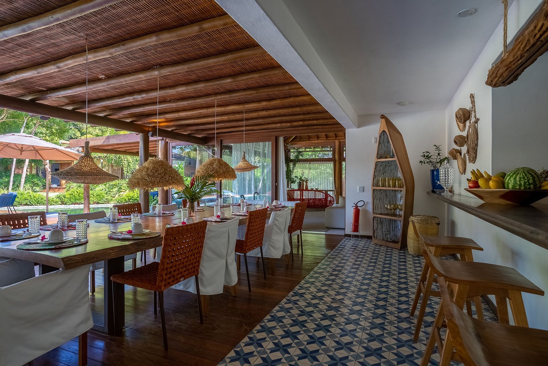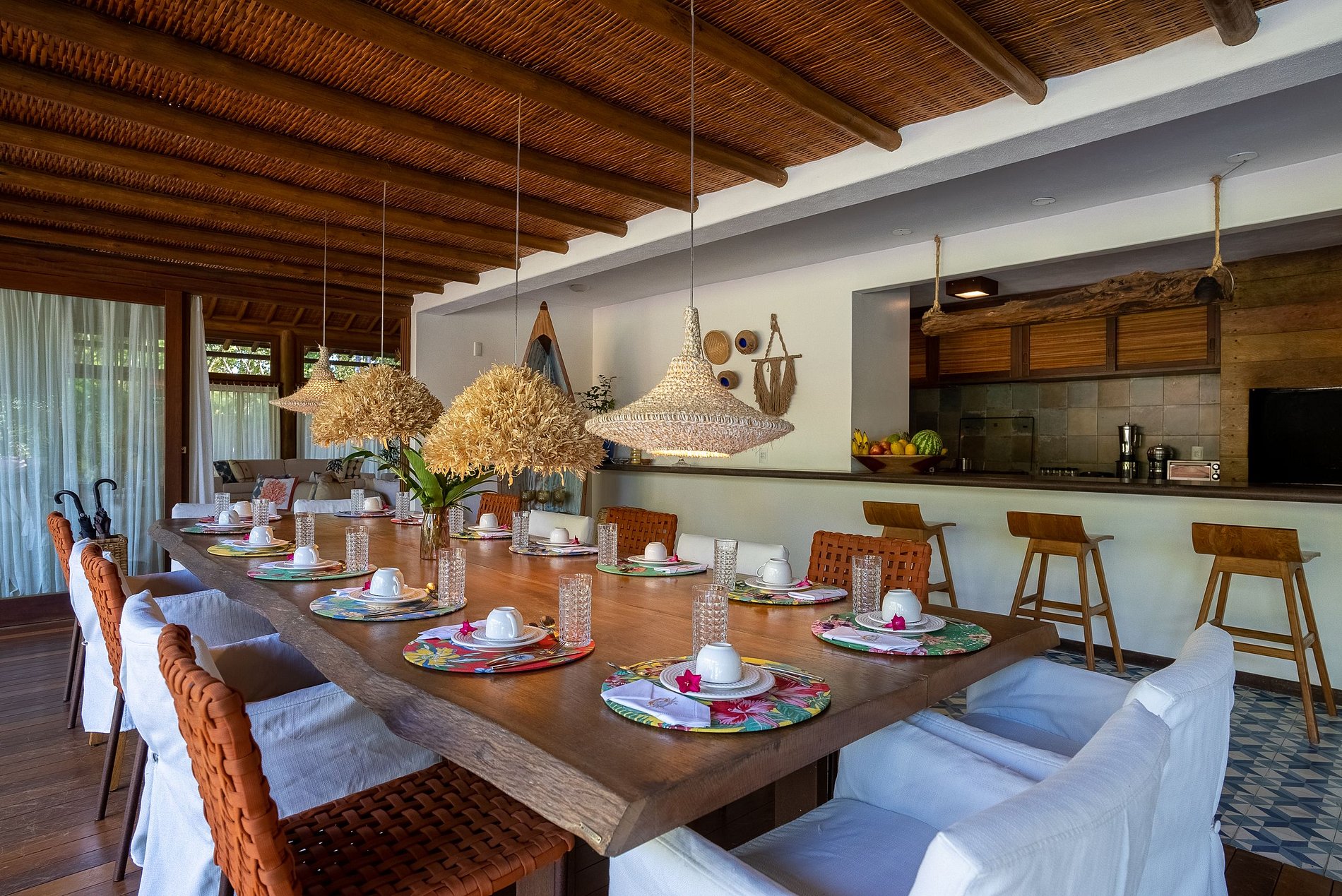 Localizada em um condomínio de luxo, a residência fica a apenas 500 metros do icônico Quadrado de Trancoso, combinando privacidade com acesso conveniente aos encantos locais.