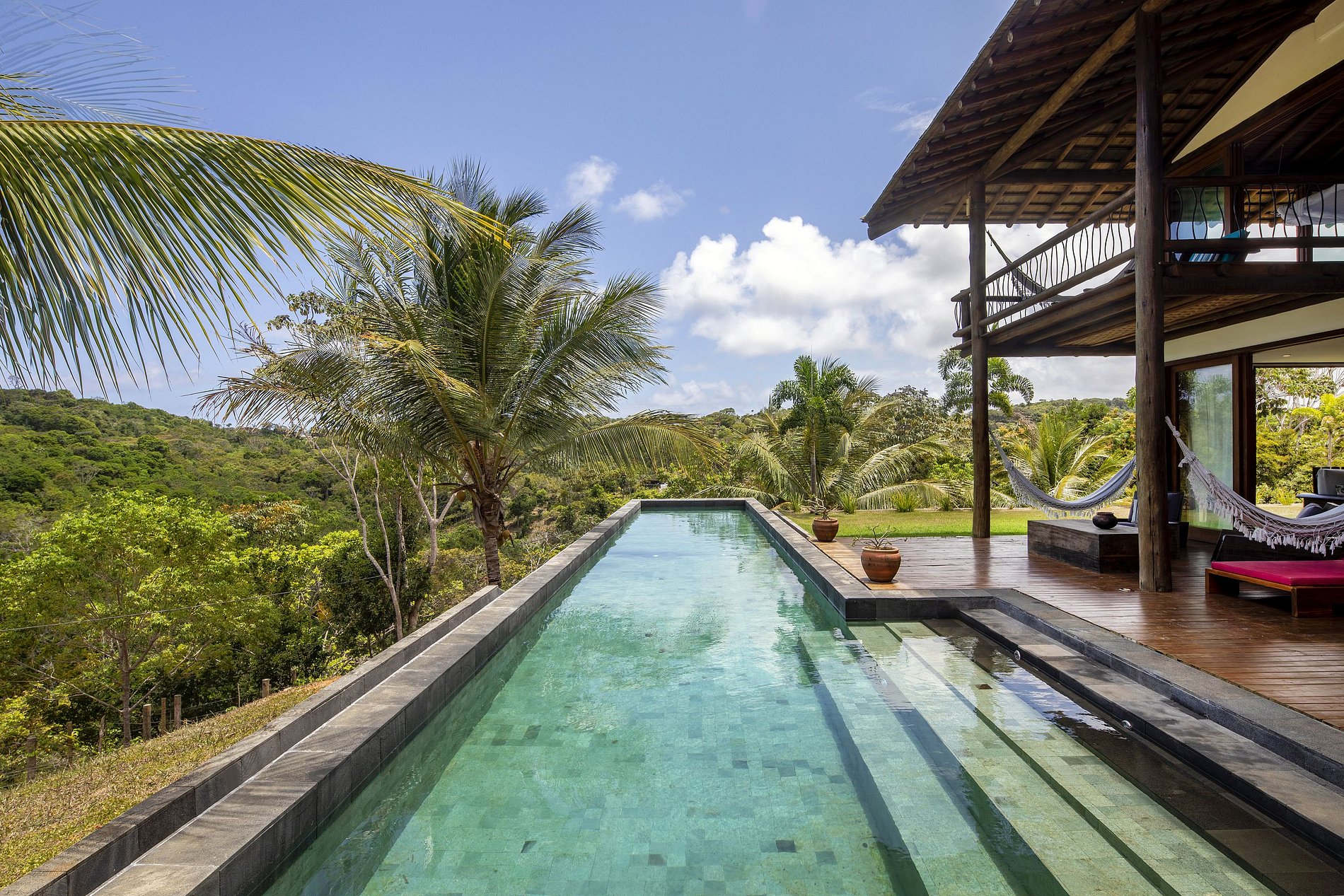 Refresque-se em um delicioso banho de piscina com uma vista de tirar o fôlego da cidade de Itacaré e do oceano.
