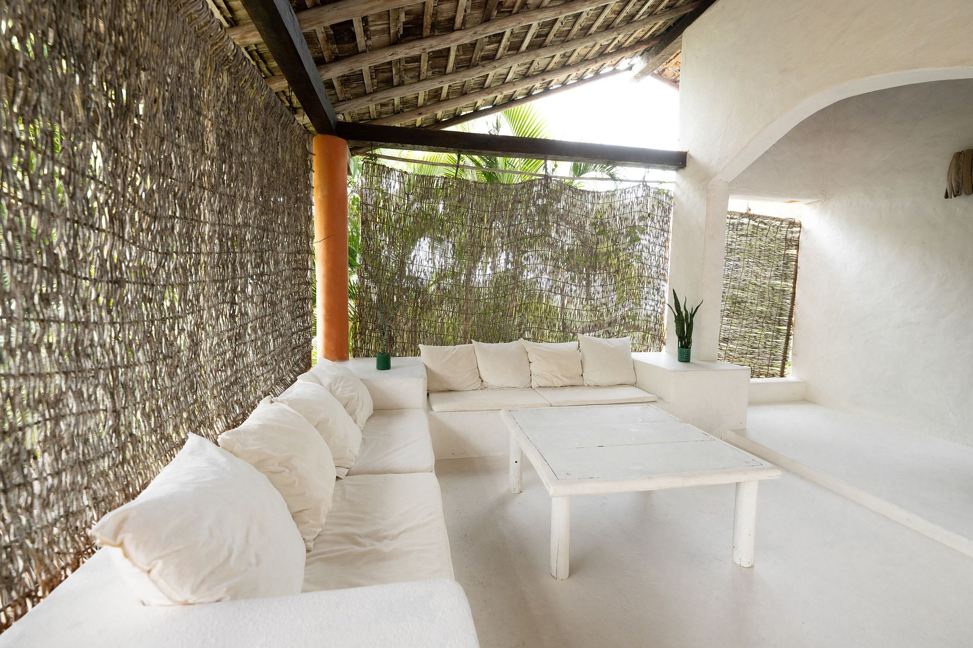 Propriedade conta com 4 quartos, sendo 2 suítes e 2 quartos com cama de casal e outro com 3 camas de solteiro. Todos os quartos abrem janelas grandes de madeira para a varanda, com deliciosos sofás e redes em frente a cada suite. Acomoda muito bem até 8 pessoas. Com pé direito alto e teto de talbilha, o ambiente da casa é extremamente arejado e bem iluminado. A cozinha americana conectada com a sala e mesa de jantar com 8 lugares. O terraço externo com solárium é um convite para descansar pós praia e desfrutar da paz em meio a natureza com vista de 180 graus para todo o litoral. O acesso ideal à propriedade é por carro, dentro de fazenda com porteira particular.