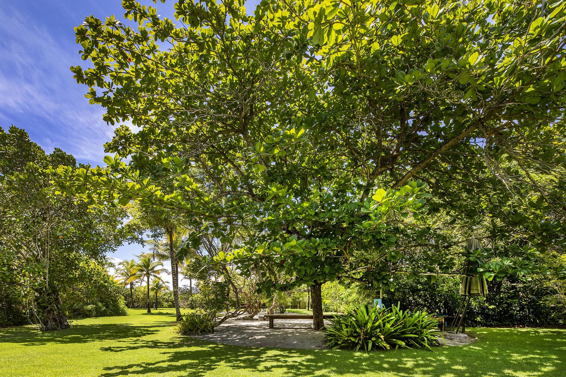 Fantástica propriedade à beira-mar em Trancoso para eventos, reunião corporativo de alto padrão, ou ferias em Família. Num lindo jardim tropical de 45.000m² com 150 metros de frente para a praia.