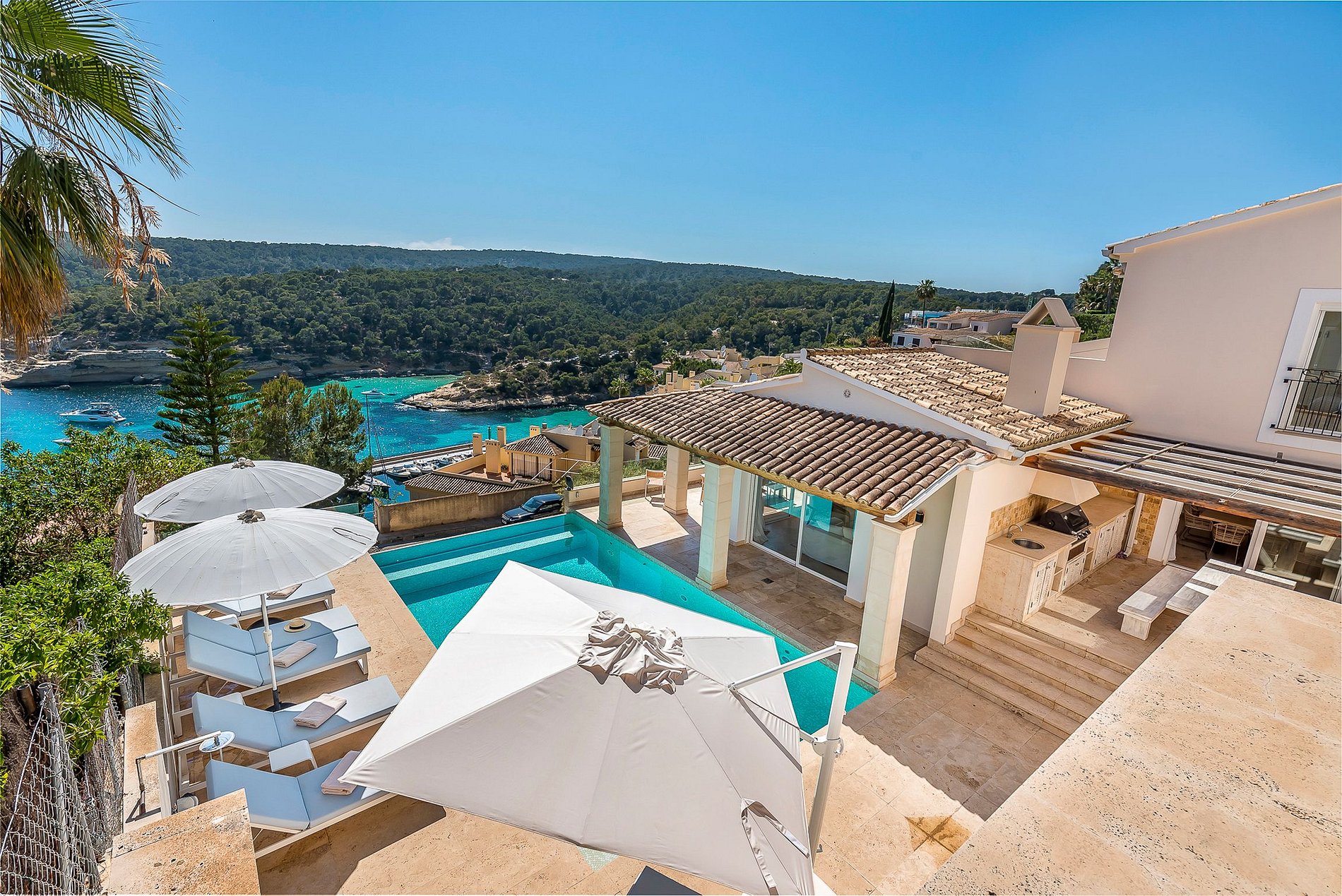 Esta villa está localizada no sudoeste da ilha, com vista para o pequeno porto e a baía azul-turquesa de Portals Vells. Tem muitos terraços pequenos que oferecem vistas panorâmicas deslumbrantes.
