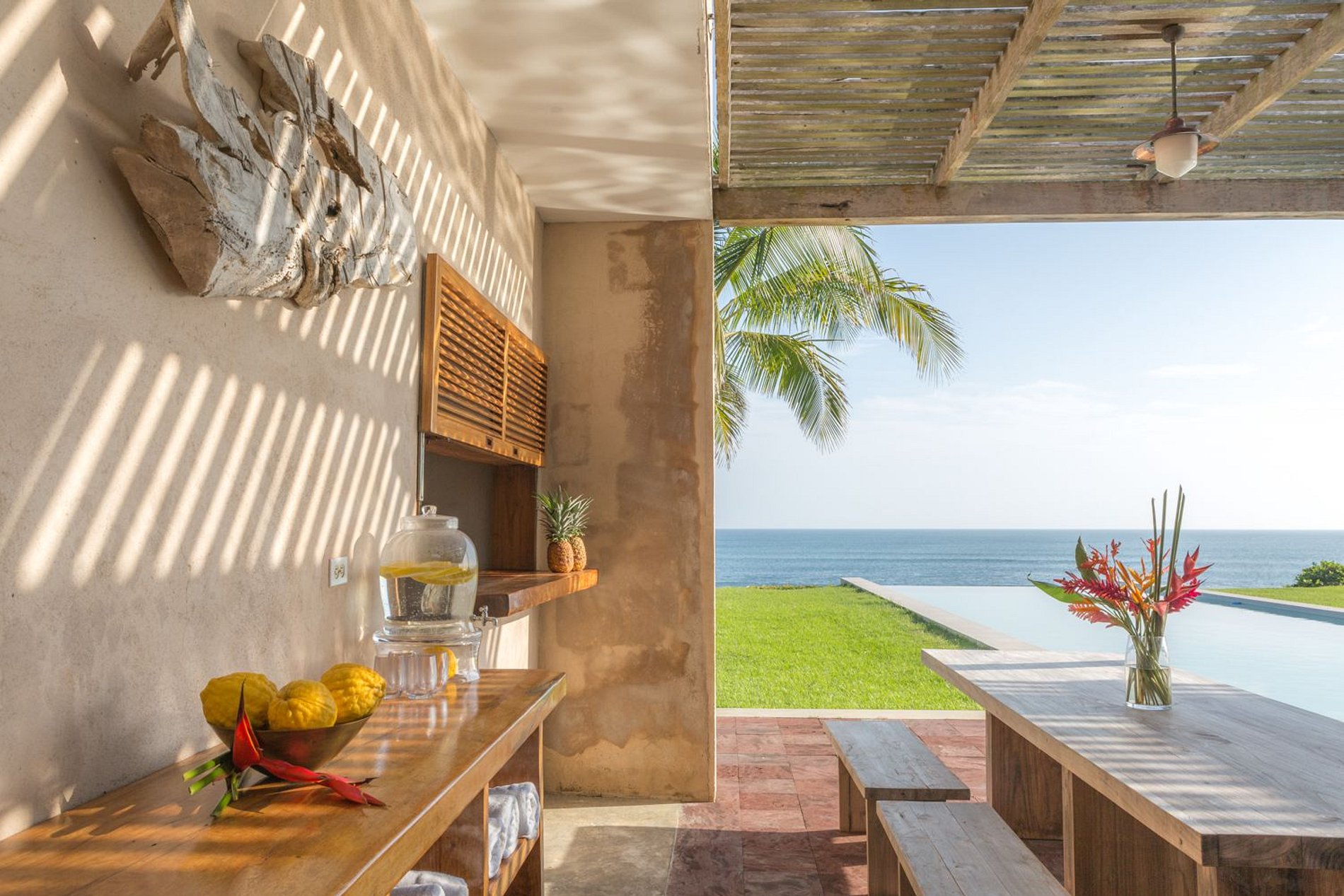 A villa possui uma grande piscina de borda infinita, quadra de tênis privada, estábulos e várias áreas de lounge ao ar livre de onde você pode desfrutar de vistas amplas do oceano.