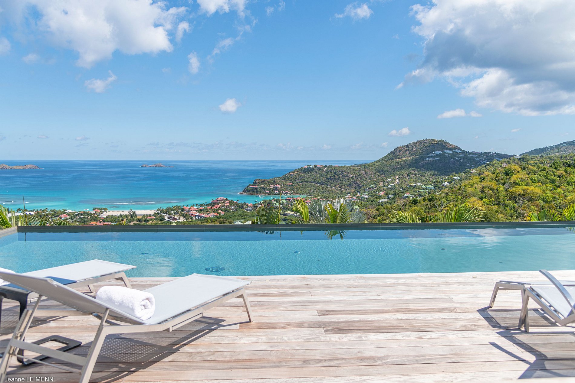 A ampla área social em conceito aberto inclui uma cozinha totalmente equipada, uma sala de estar elegante e portas de vidro do chão ao teto que emolduram as águas turquesa da baía de St. Jean. Do lado de fora, o espaçoso terraço conta com piscina infinita aquecida, área para refeições ao ar livre e uma televisão retrátil — perfeita para noites sob as estrelas.