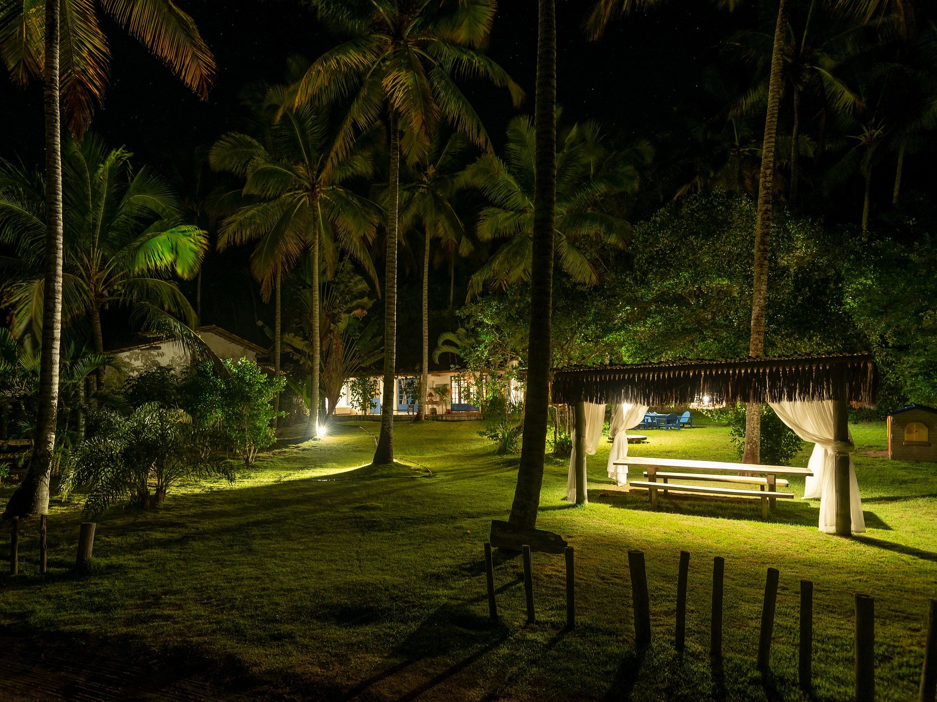 Ao explorar o exterior da Villa, você se encontrará em um gramado magnífico, cercado por coqueiros balançantes e o som suave das ondas. Este espaço idílico é perfeito para almoços ao ar livre, jantares sob as estrelas ou momentos de diversão em família.