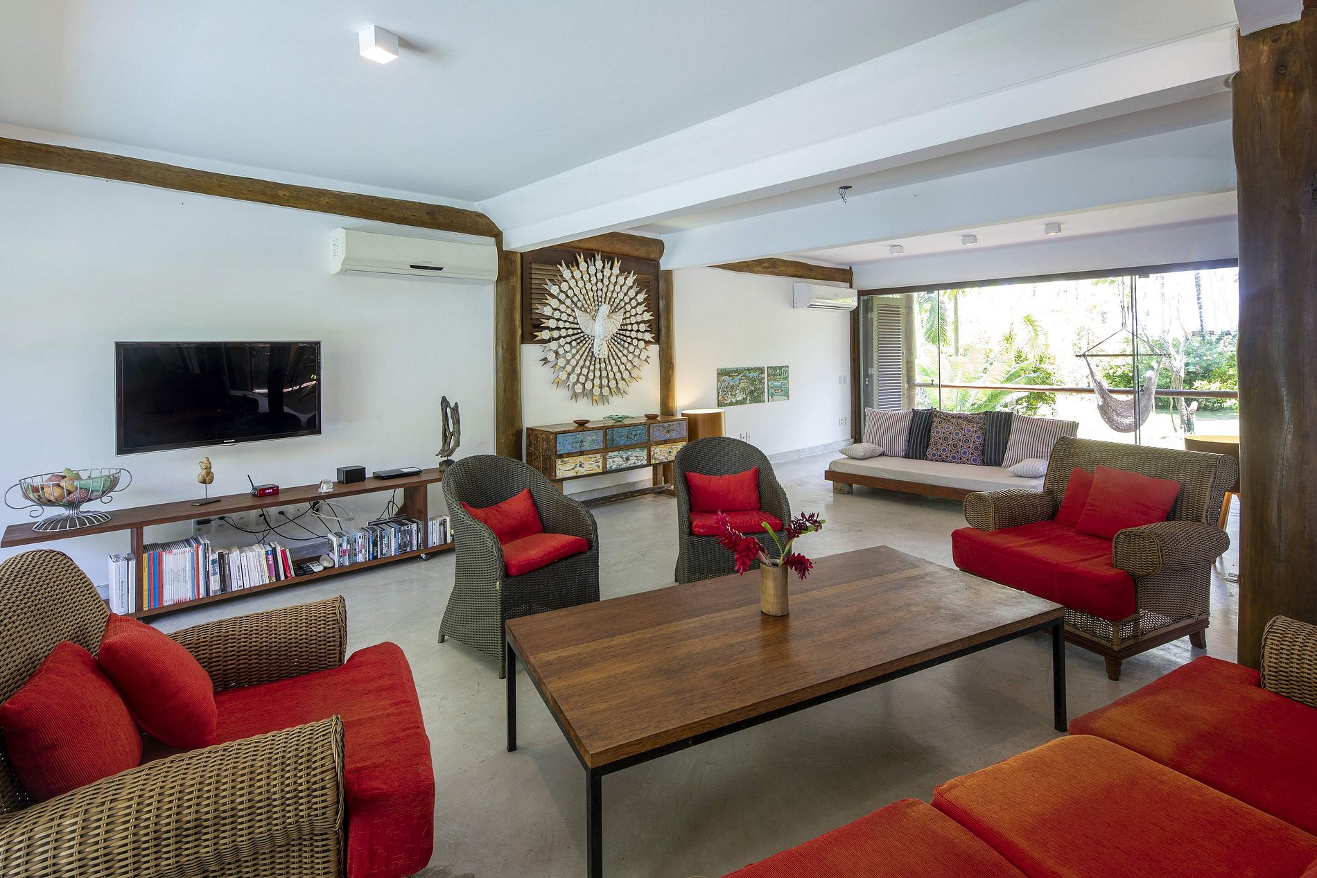 A decoração interna reflete o requinte do artesanato brasileiro, com móveis, esculturas e obras de arte cuidadosamente selecionados do Estado de Minas Gerais, combinando elementos em madeira e metal com aconchego e elegância.