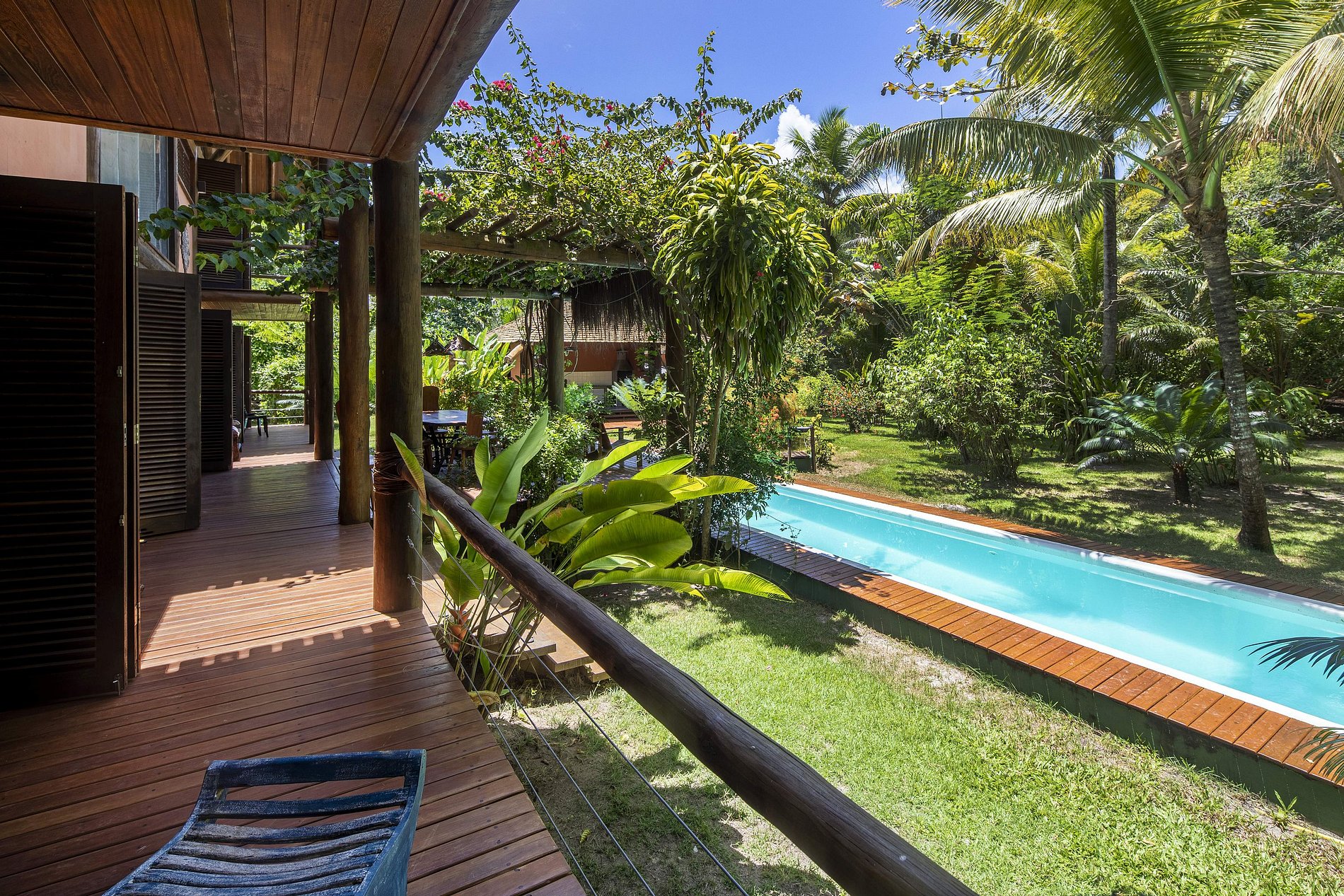 • Amplo deck de madeira com vista panorâmica para o mar