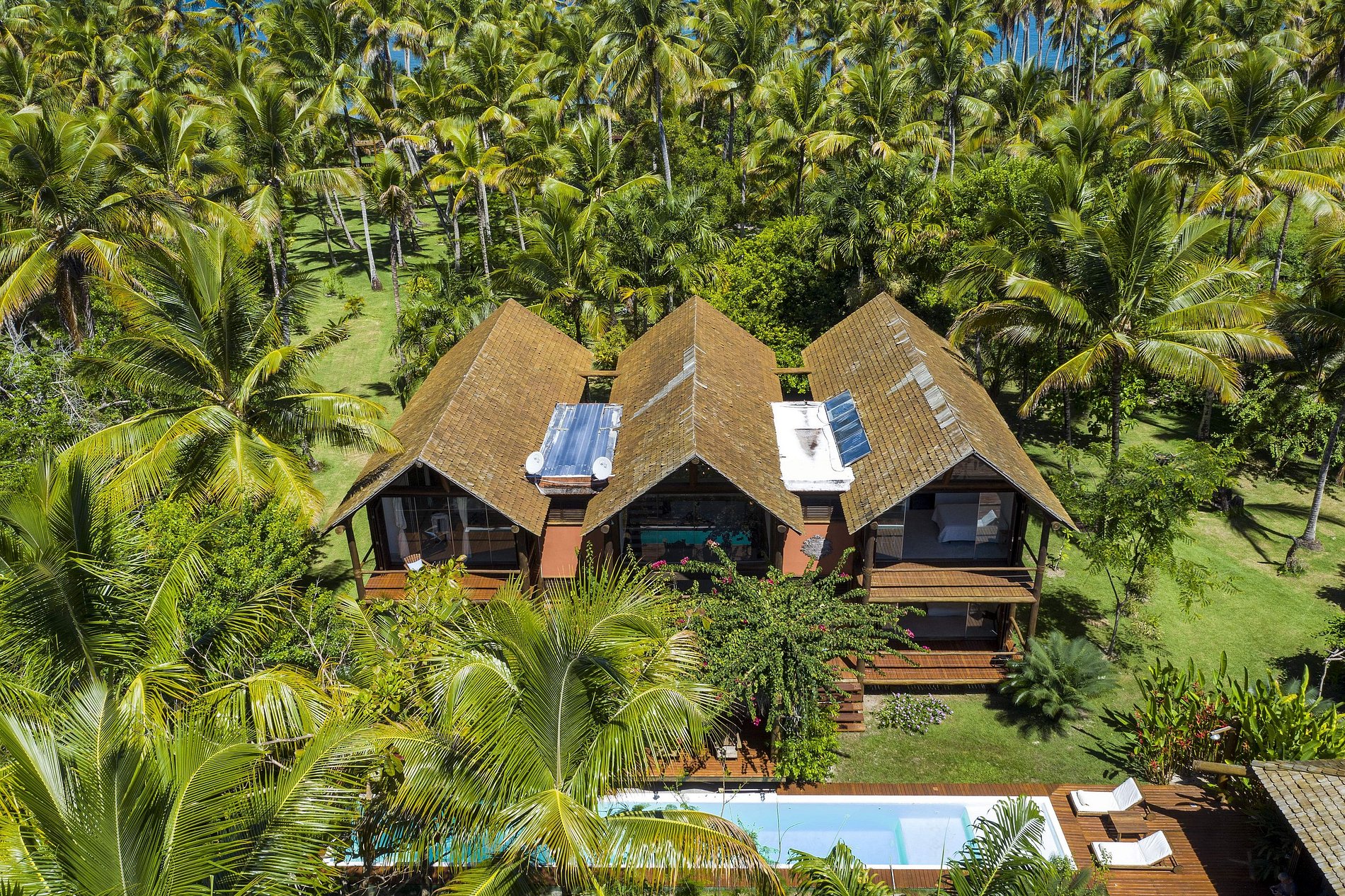 Construída com madeira de eucalipto, vidro e concreto polido, esta incrível villa à beira-mar é uma joia rara da arquitetura situada em 30 metros de praia tranquila e intocada. Localizada em um coqueiral tropical de 20.000m², a propriedade é cercada por jardins exuberantes com plantas nativas e árvores exóticas, criando um refúgio de serenidade absoluta.