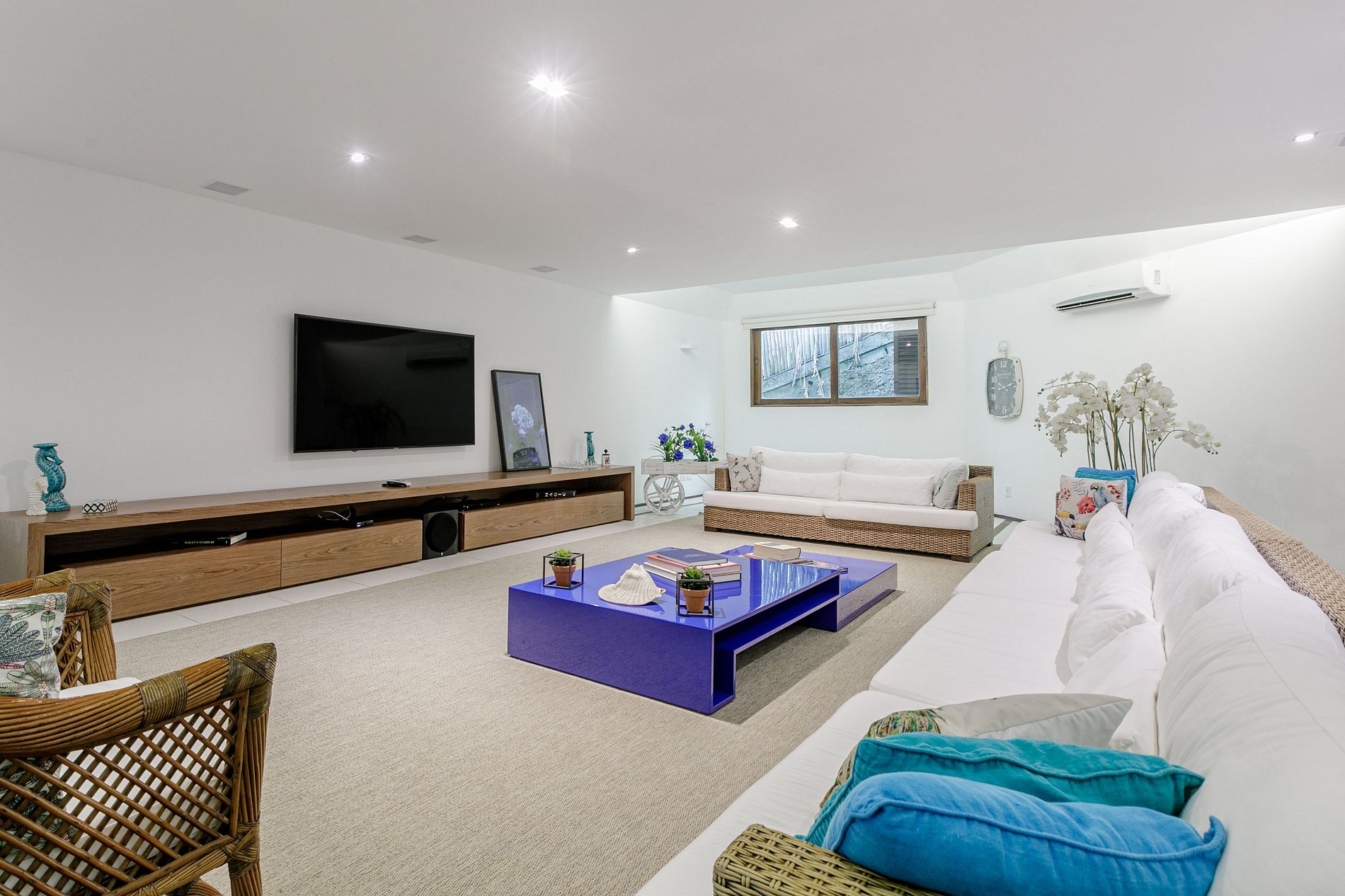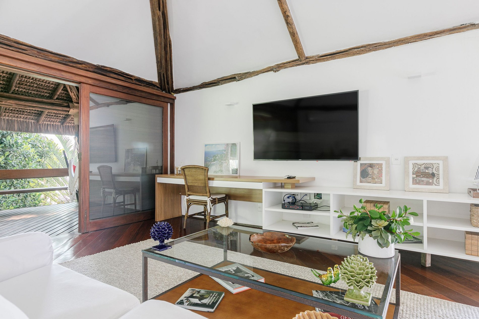 Todos os quartos tem sua própria varanda, excelente vista da praia ou do jardim, com cortinas blackout, ar condicionado e mosquiteiros. As instalações incluem sala de TV com Sky, sistema de som em toda a casa, sala de jantar e bar. Também possui Wi-Fi, academia, mesa de bilhar, casa de barcos, stand-up paddle, área para churrasco, cozinha e lavanderia modernas.