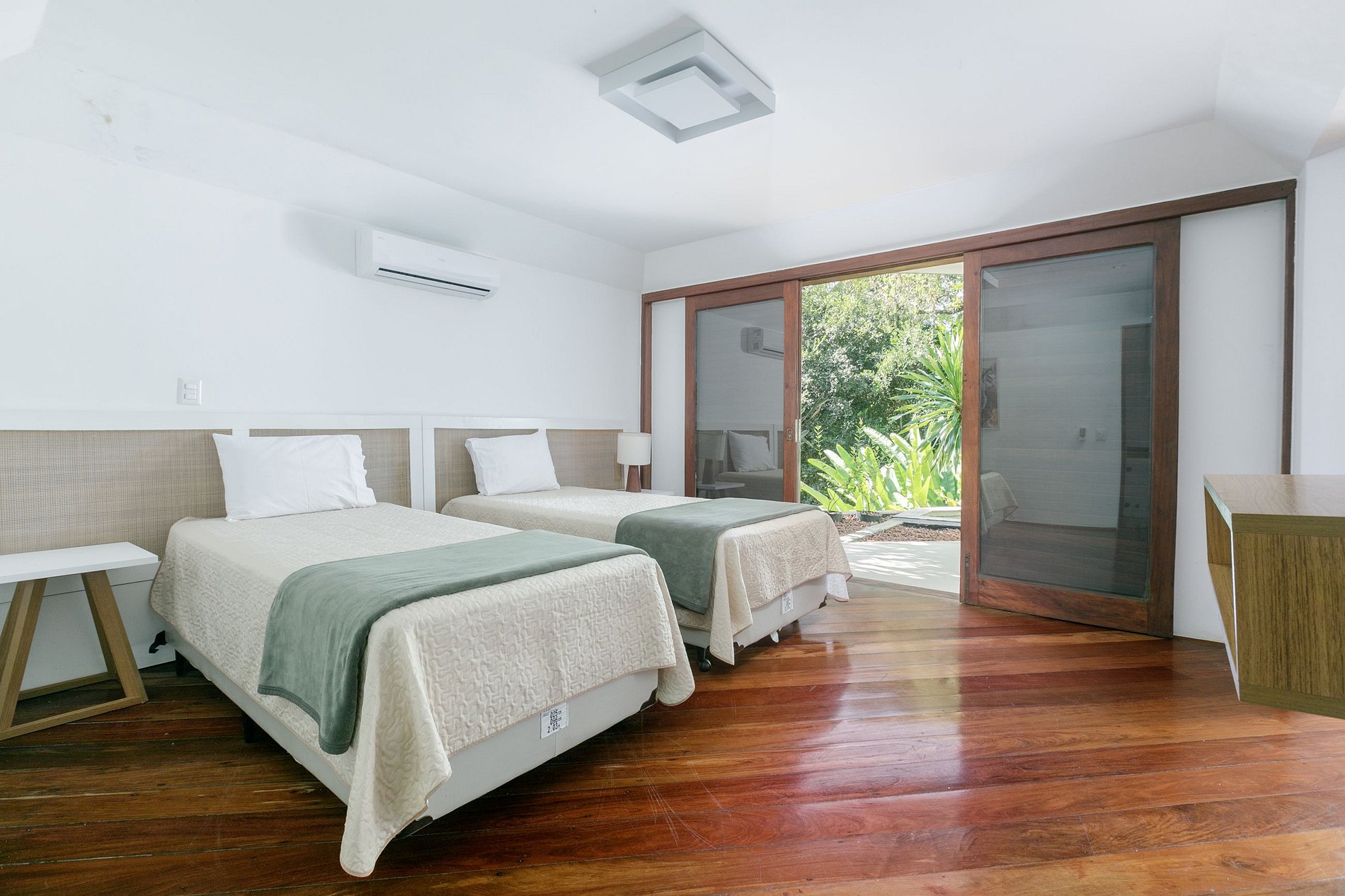 Todos os quartos tem sua própria varanda, excelente vista da praia ou do jardim, com cortinas blackout, ar condicionado e mosquiteiros. As instalações incluem sala de TV com Sky, sistema de som em toda a casa, sala de jantar e bar. Também possui Wi-Fi, academia, mesa de bilhar, casa de barcos, stand-up paddle, área para churrasco, cozinha e lavanderia modernas.