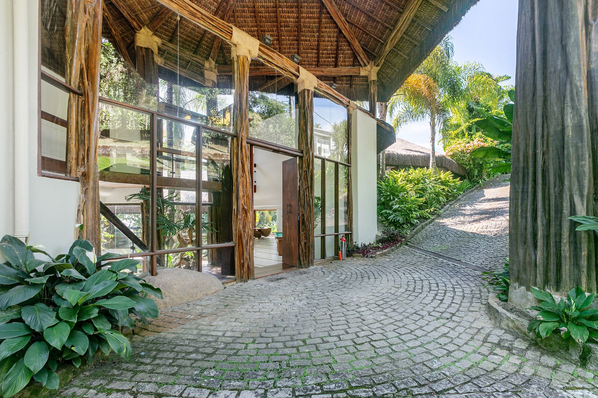 Autêntica e Luxuosa Casa de Sapê construída essencialmente de madeira quari-quara com telhados em sapê e está localizada frente ao mar, com uma vista magnífica da baía de Mangaratiba. Tem sua própria praia privada, um píer, heliporto, uma magnífica piscina e jacuzzi. A residência tem capacidade para receber até 18 convidados em 8 suítes.
