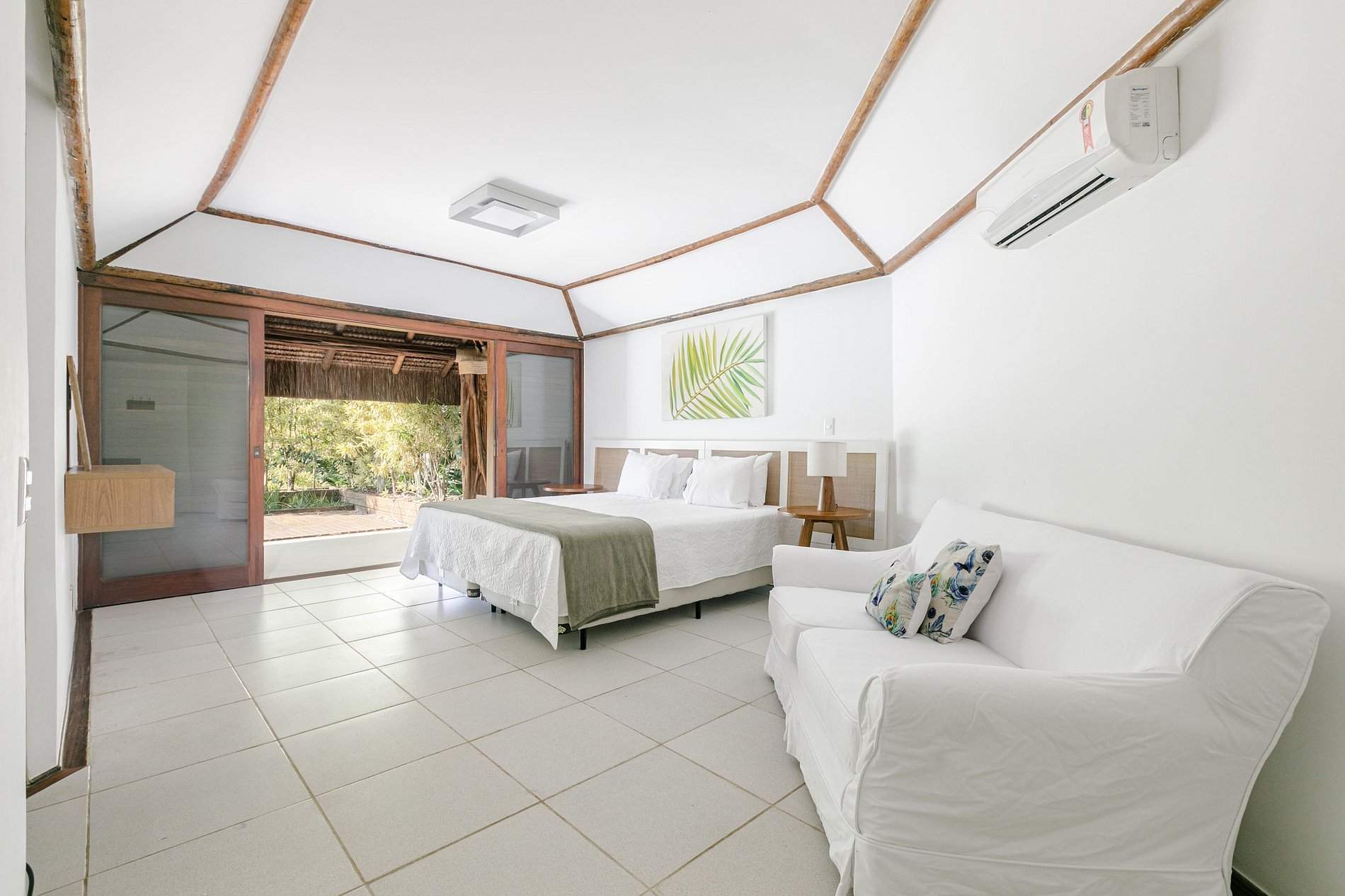 Todos os quartos tem sua própria varanda, excelente vista da praia ou do jardim, com cortinas blackout, ar condicionado e mosquiteiros.