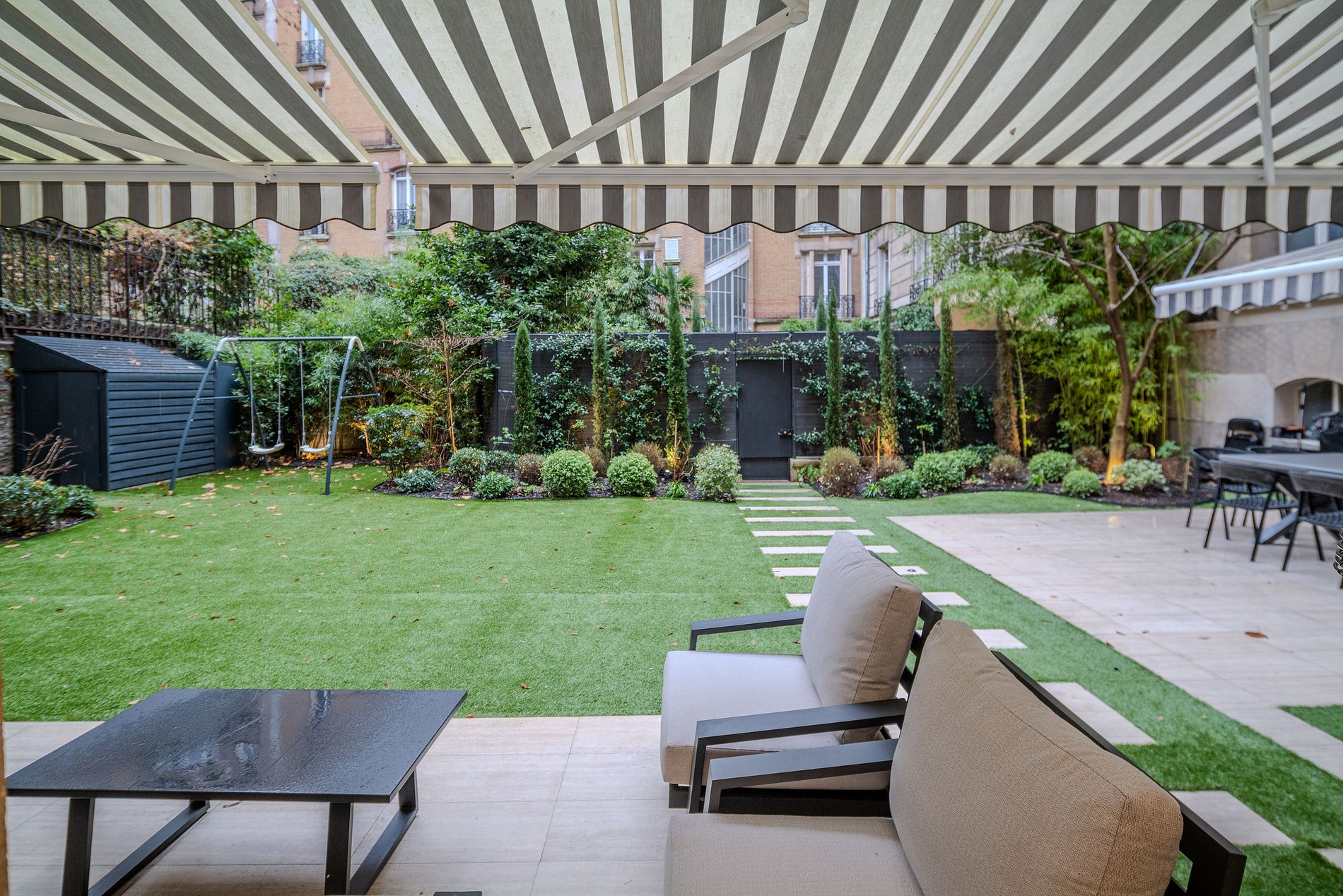 Jardim Espaçoso de 200m²: Desfrute de um vasto jardim totalmente equipado, um verdadeiro oásis no coração de Paris. Este espaço ao ar livre é perfeito para relaxar, fazer refeições ao ar livre ou simplesmente aproveitar a calma ao redor.