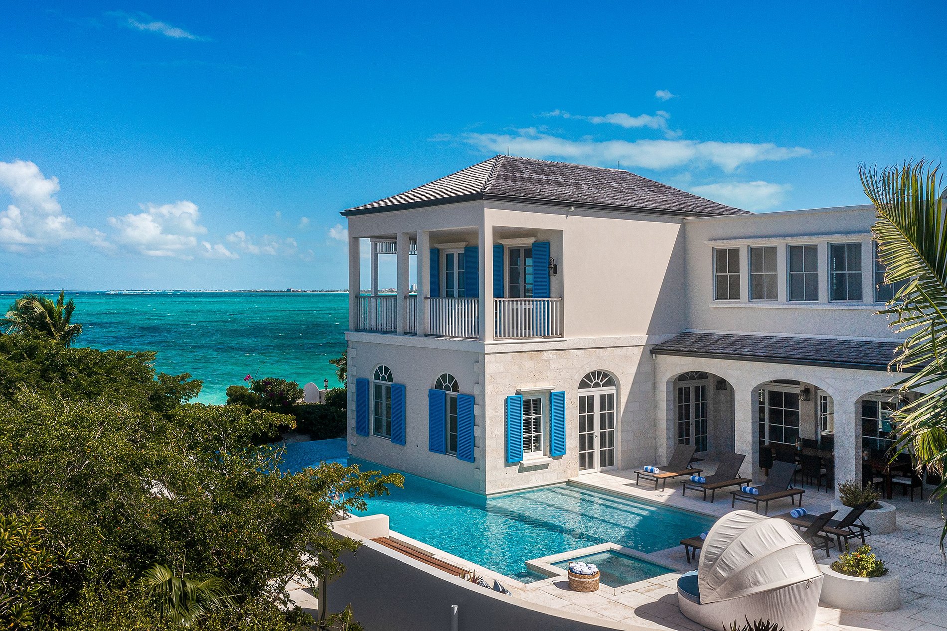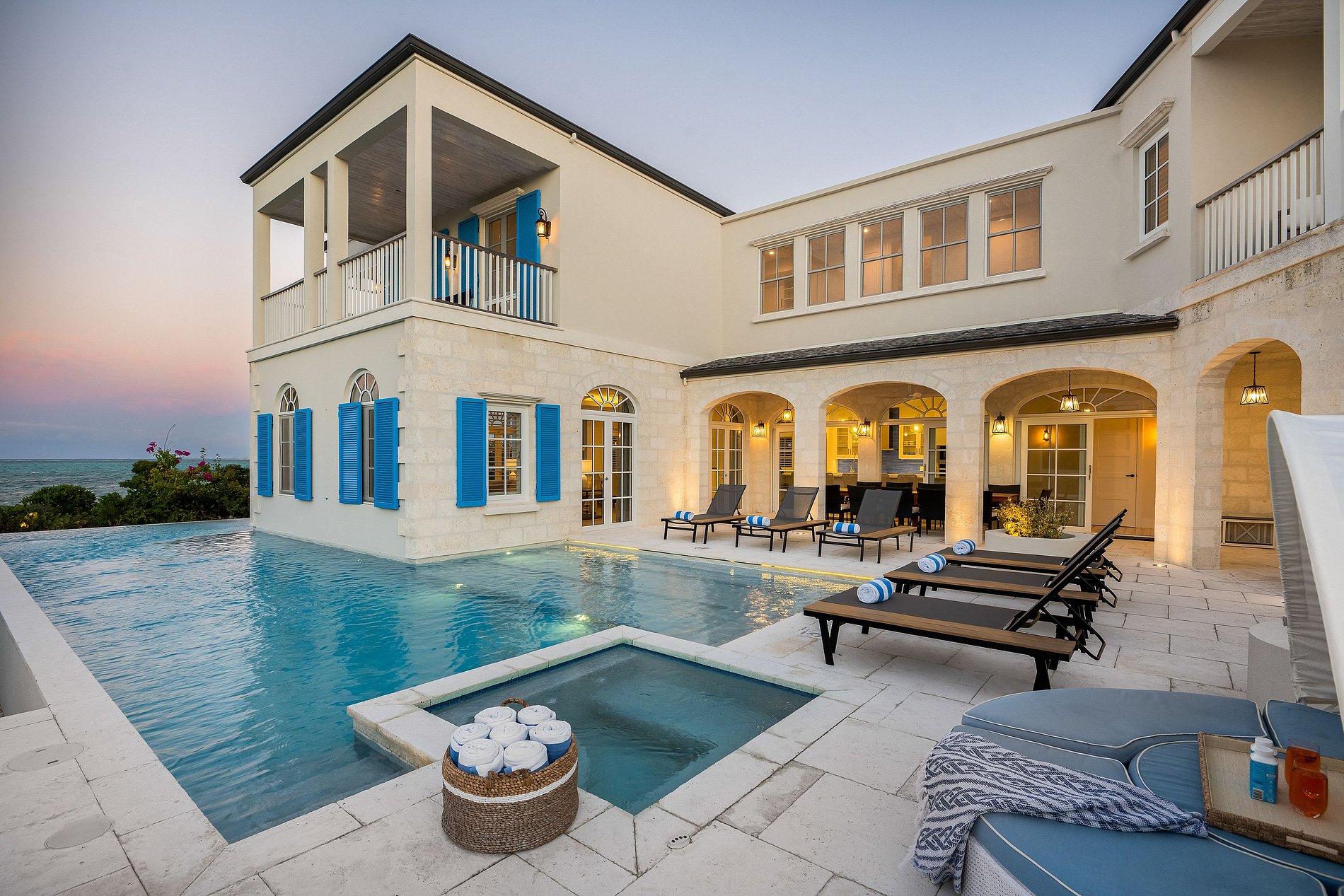 Localizada na encantadora área de Turtle Cove em Grace Bay, esta elegante villa de seis quartos oferece uma combinação serena de design tradicional e conforto caribenho, a poucos passos da praia. Rodeada por vegetação tropical, a casa apresenta amplas varandas em todos os níveis, arcos de pedra graciosos e vistas tranquilas das águas azul-turquesa de quase todos os ângulos.