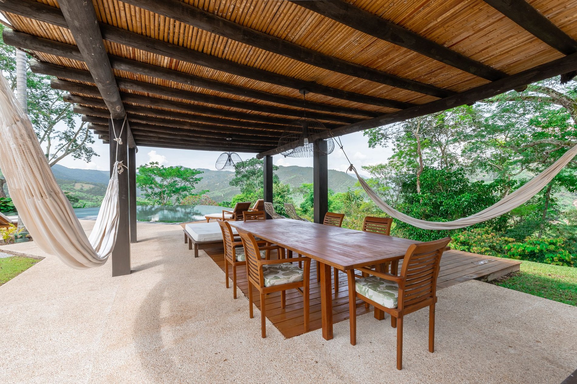 Bela propriedade com vista panorâmica da montanha e piscina maravilhosa. A casa tem 3 quartos confortáveis todos com closet e banheiro privado, sala de jantar com vista e cozinha fechada.