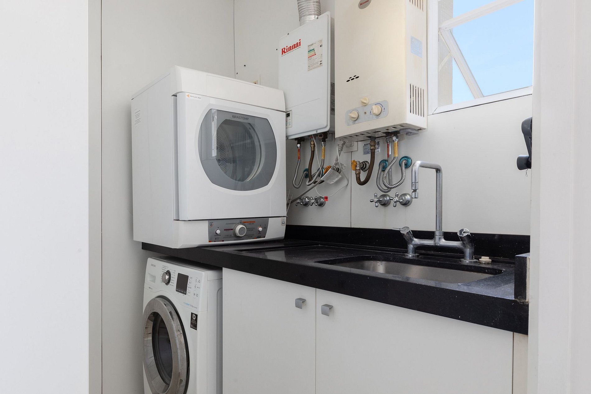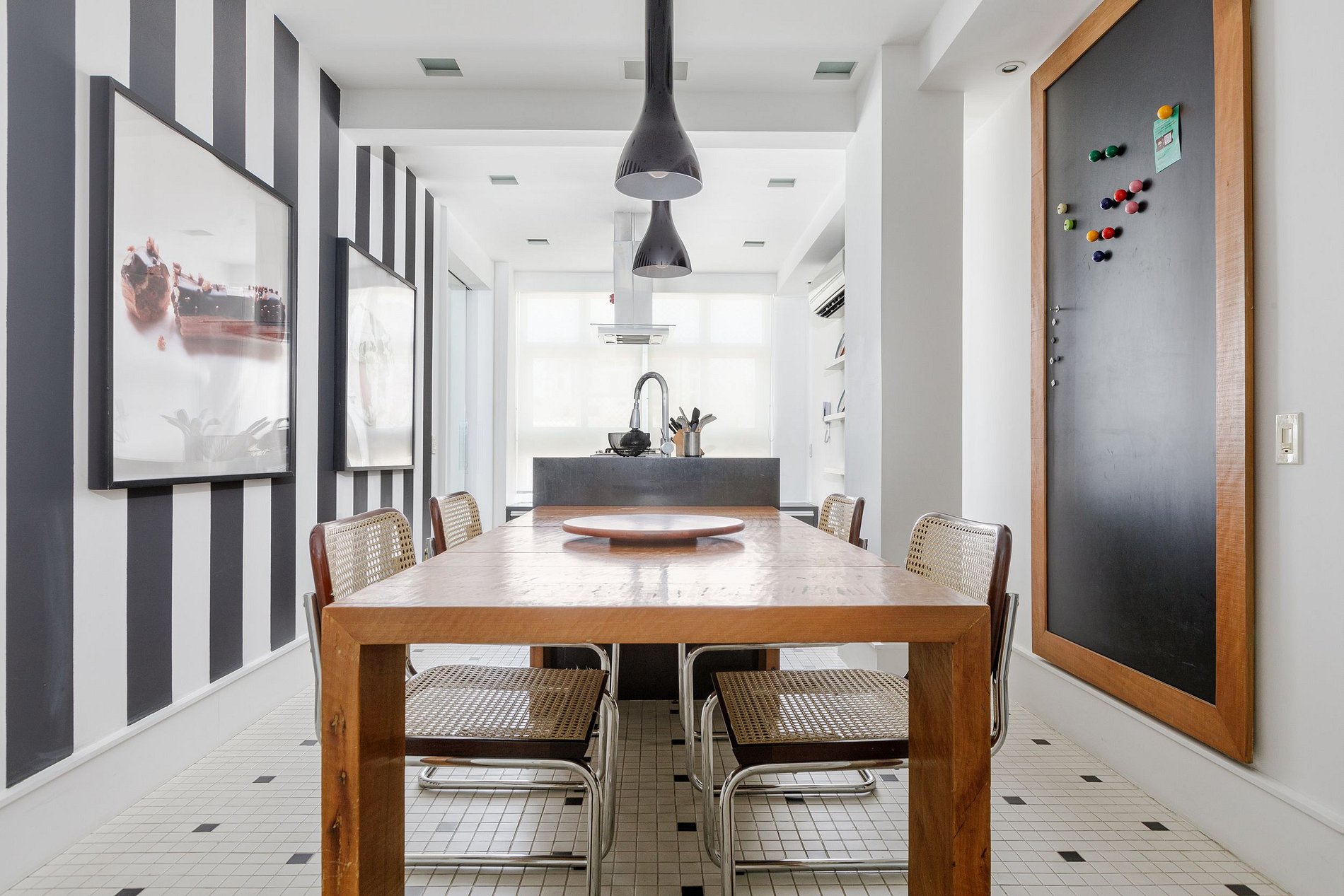 A cozinha, totalmente equipada com aparelhos modernos e utensílios de qualidade, convida você a preparar refeições deliciosas enquanto aprecia a vista panorâmica da cidade. A área de jantar adjacente oferece espaço suficiente para refeições em família ou entre amigos, criando momentos memoráveis durante sua estadia.