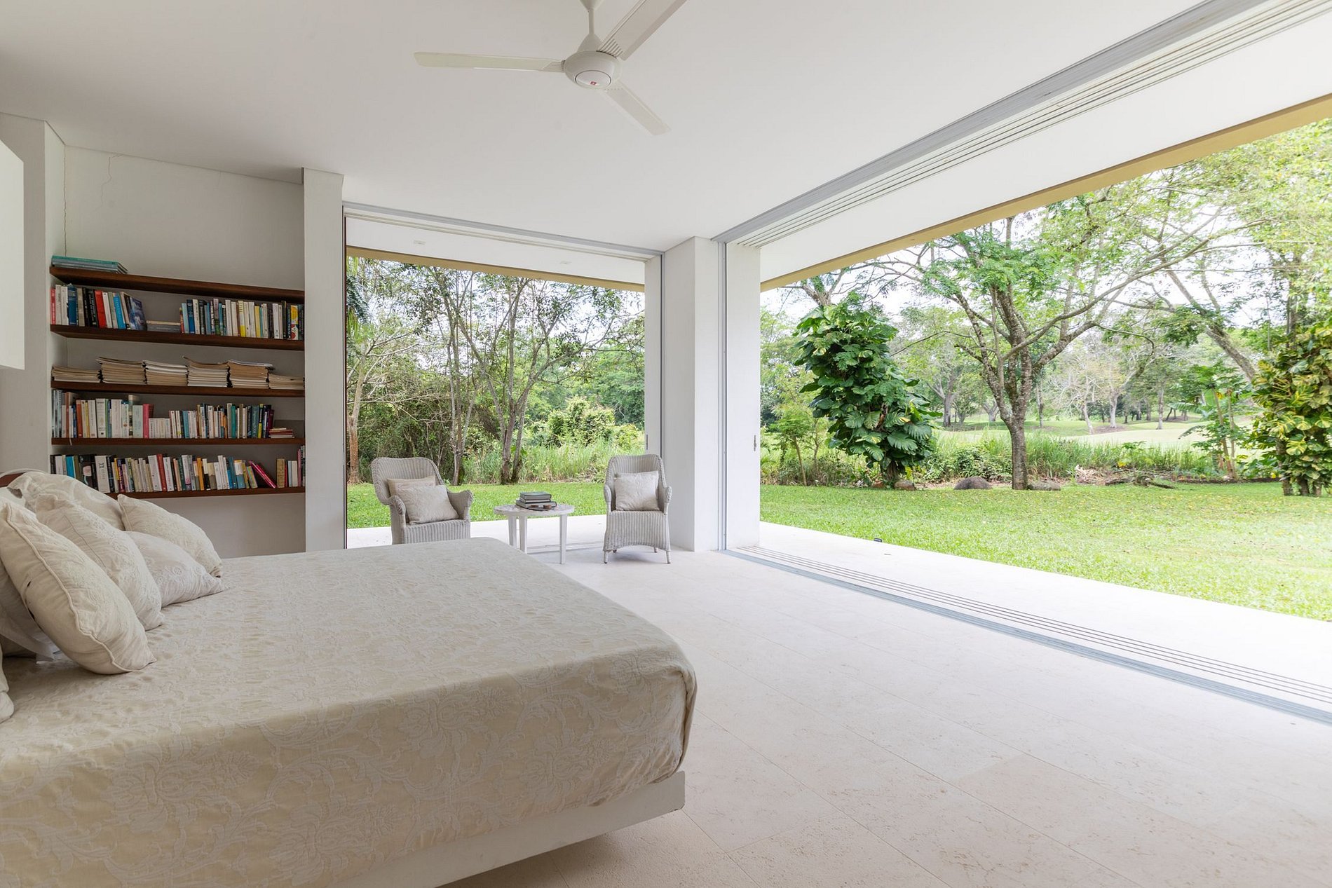 Esta villa possuí 4 grandes suítes, todas com acesso ao belo jardim e a piscina. A suíte master, a maior de todas possuí cama king size, suas outras 3 suítes possuem cada, cama queen size e duas camas de solteiro, perfeito para famílias.