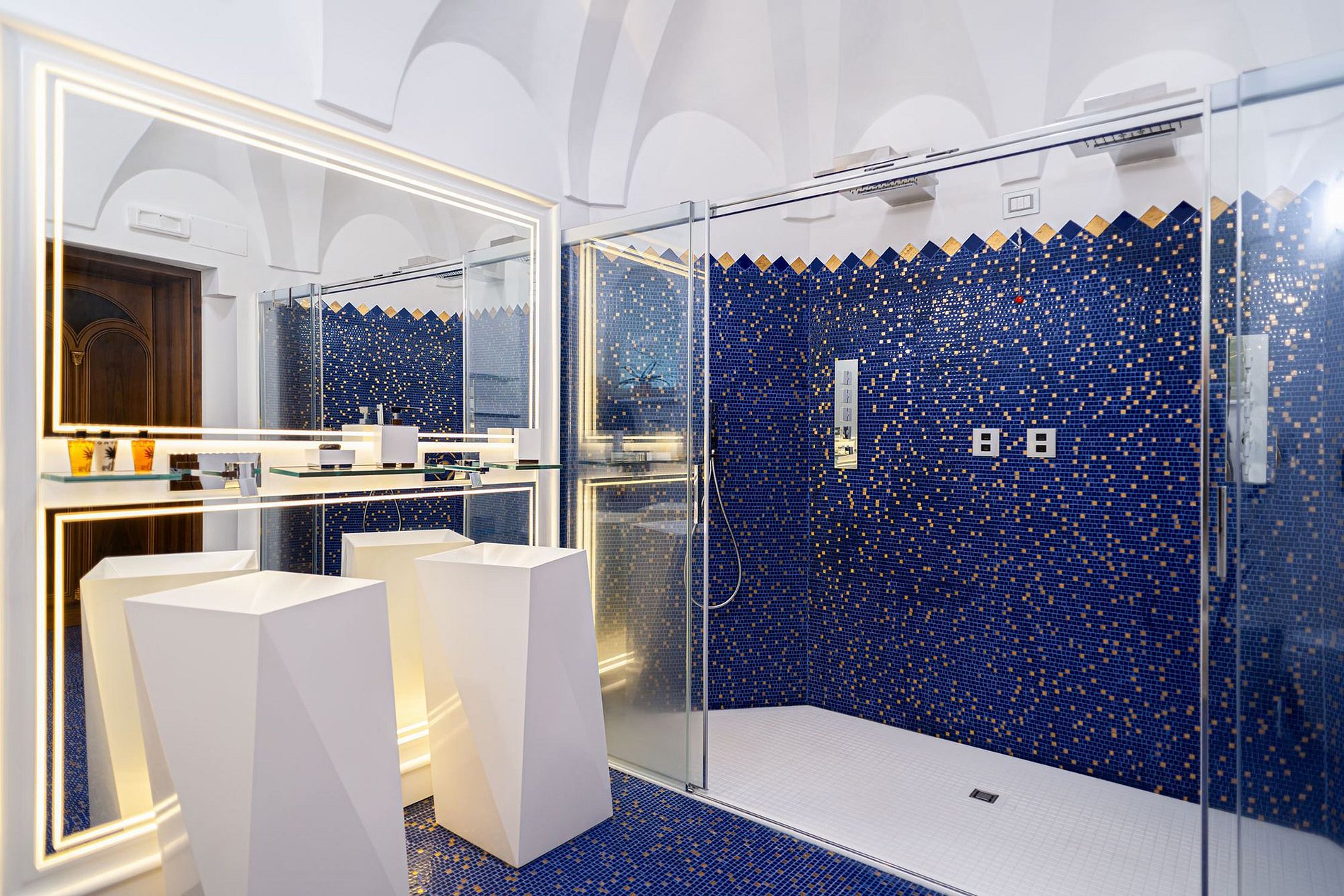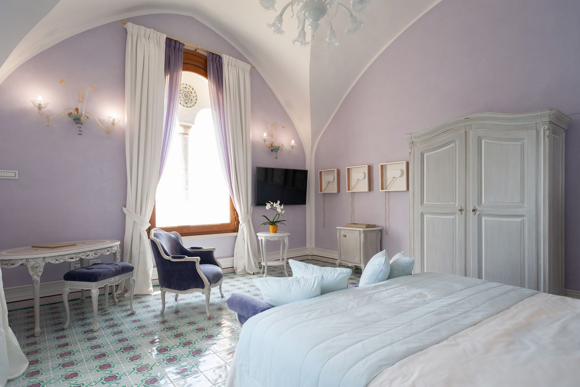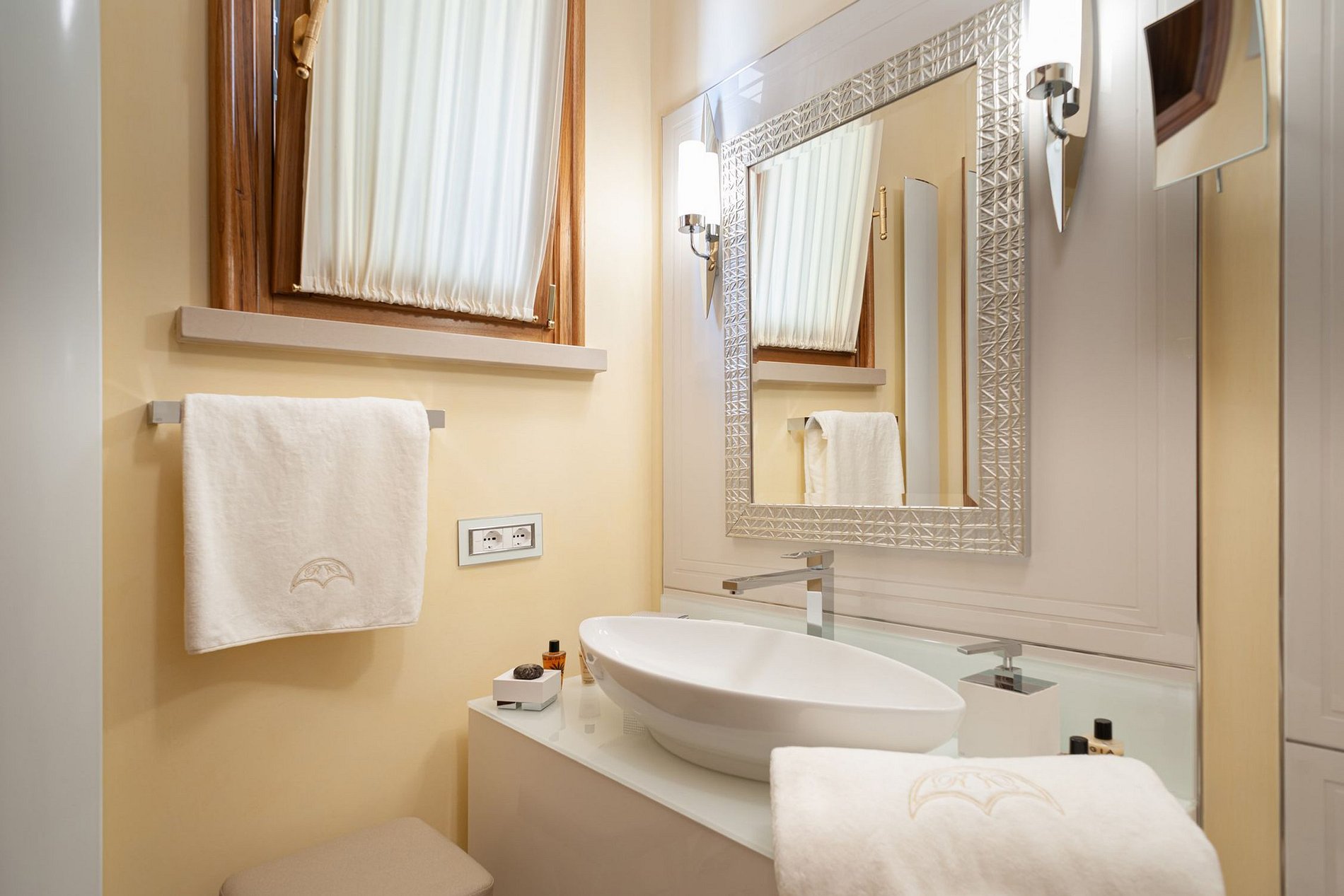 O interior é caracterizado pelos mais elevados níveis de qualidade, elegância e luxo incluindo restauro, respeitando os constrangimentos histórico-artísticos dos elementos arquitetônicos tradicionais. Sua decoração e mobiliário, de primeira qualidade, foram feitos por artesãos italianos, integrados a antiguidades, como as maçanetas folheadas a ouro e portas de armários de ourivesaria, luminárias de vidro de Murano, estátuas e bustos.