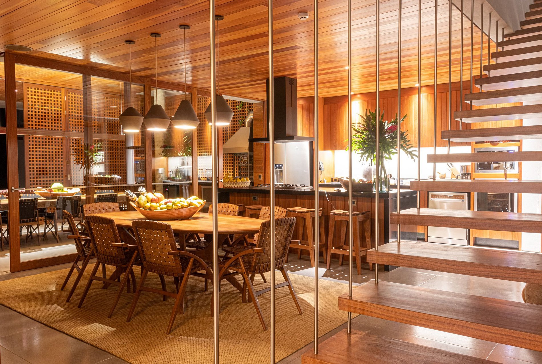 A arquitetura e a decoração de interiores da casa são um tributo à fusão cultural entre o Brasil e a Escandinávia, onde a atenção meticulosa aos detalhes é evidente. Elementos rústicos se mesclam com superfícies modernas e texturas naturais, criando um ambiente que não apenas conecta os hóspedes com a majestosa natureza ao redor, mas também celebra a rica cultura local. A decoração inclui peças exclusivas de renomados designers brasileiros e artesãos locais, garantindo uma estadia cheia de estilo e autenticidade.
