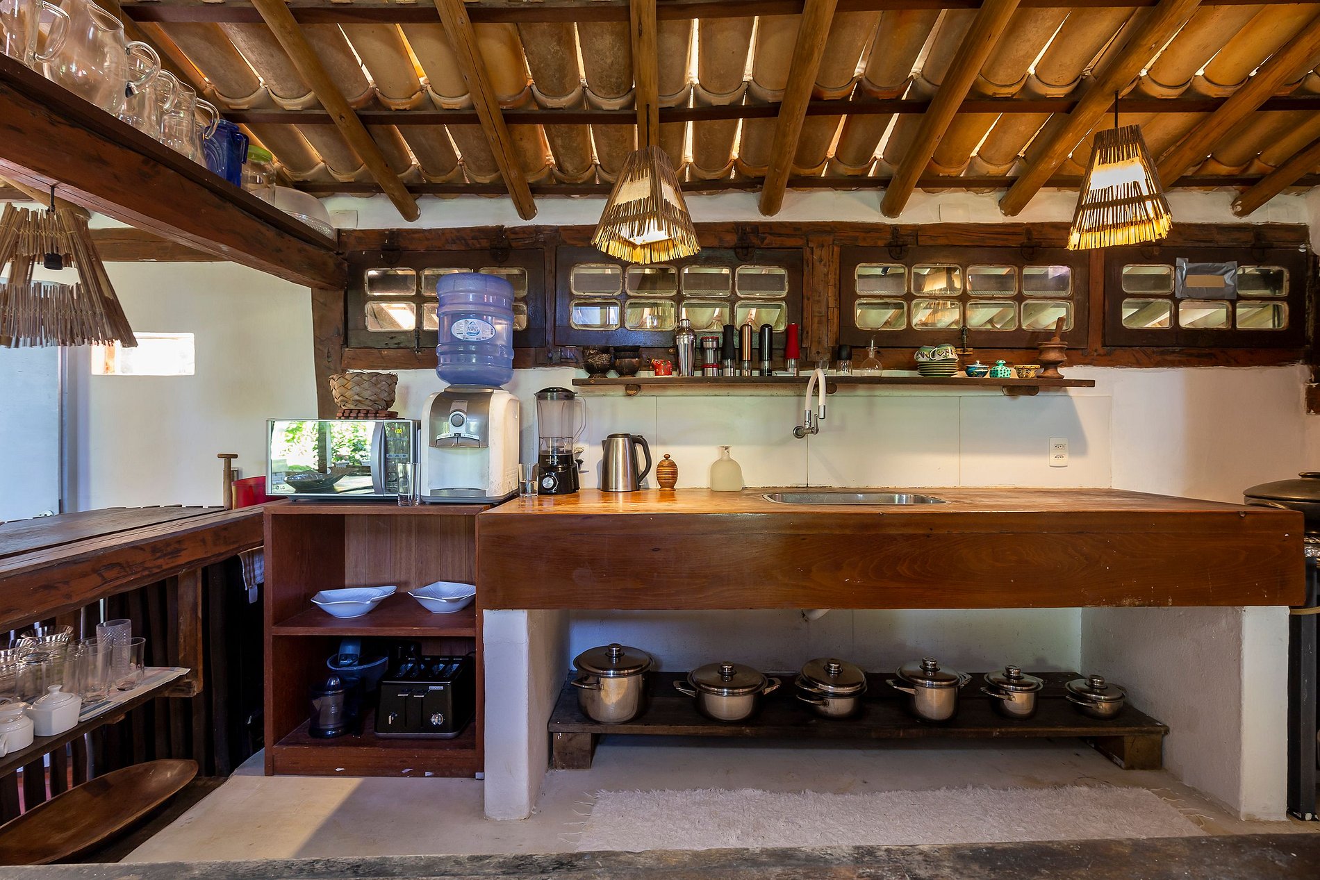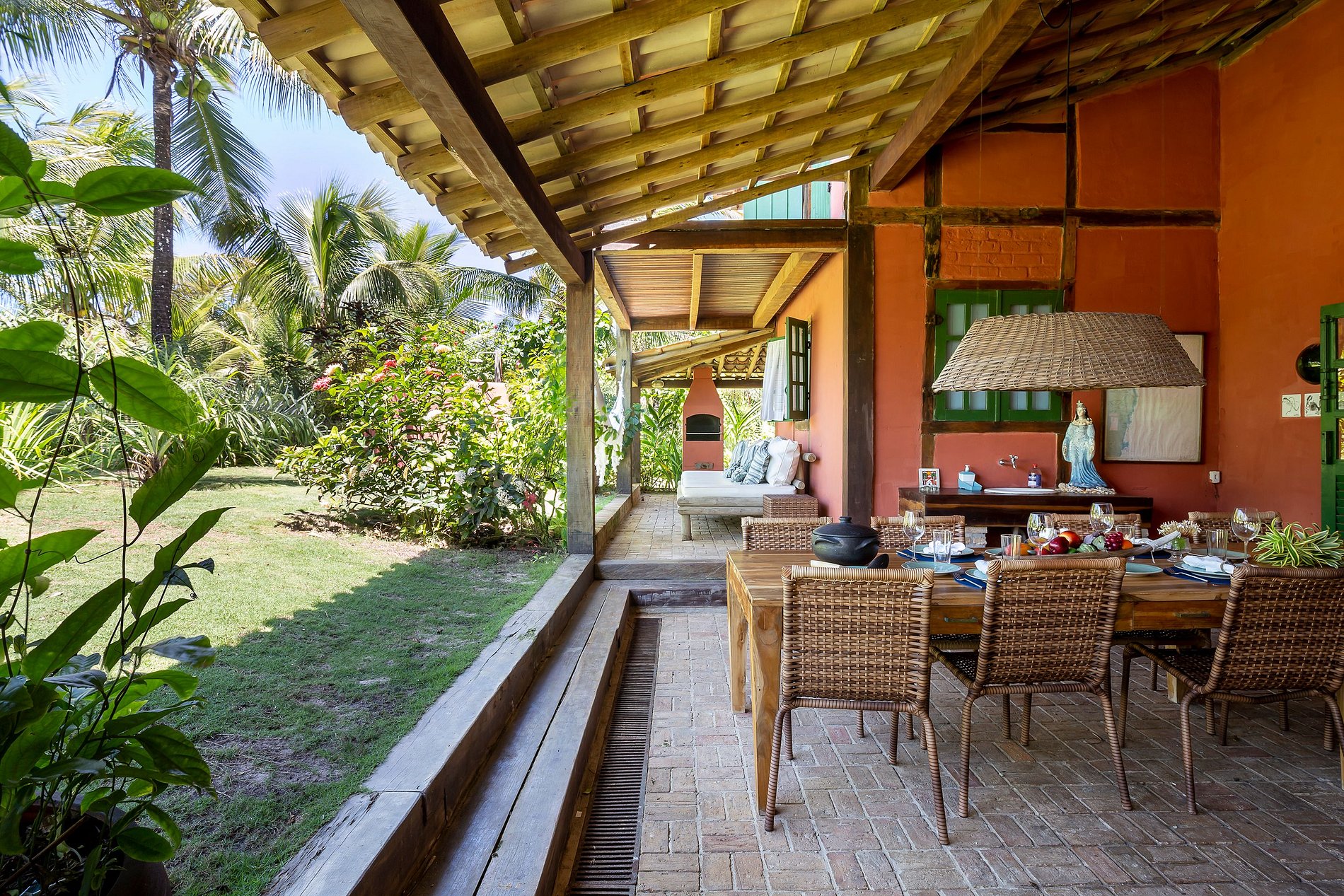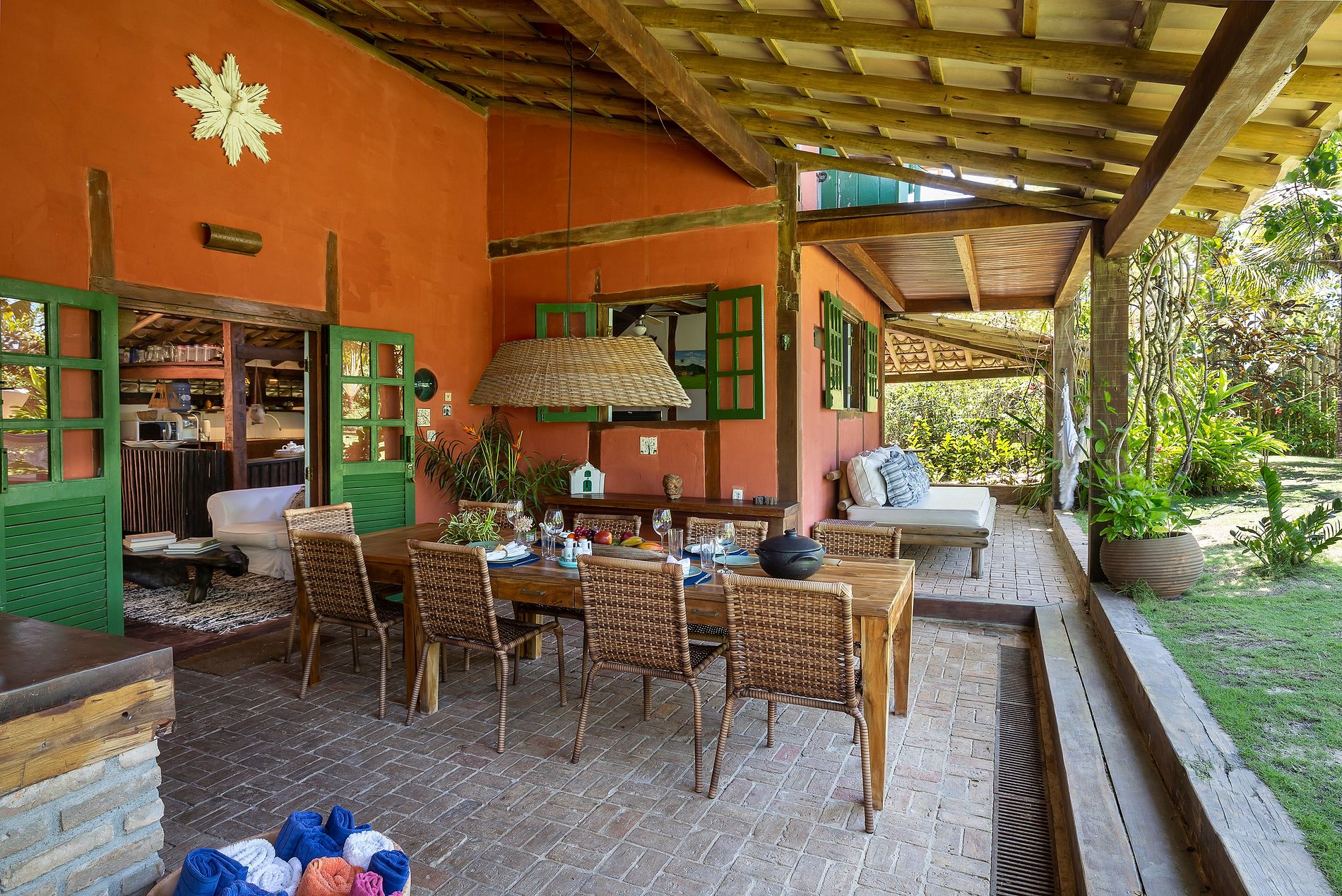 Praia tranqüila. Casa pé na areia em Trancoso. Piscina ensolarada. Ambiente tranqüilo e aconchegante faz essa casa ser uma referencia forte de locação. São 06 suites, sendo duas com vista mar. Varanda para as refeições e lazer. No centro da casa está a sala de refeição e a cozinha americana com bar.