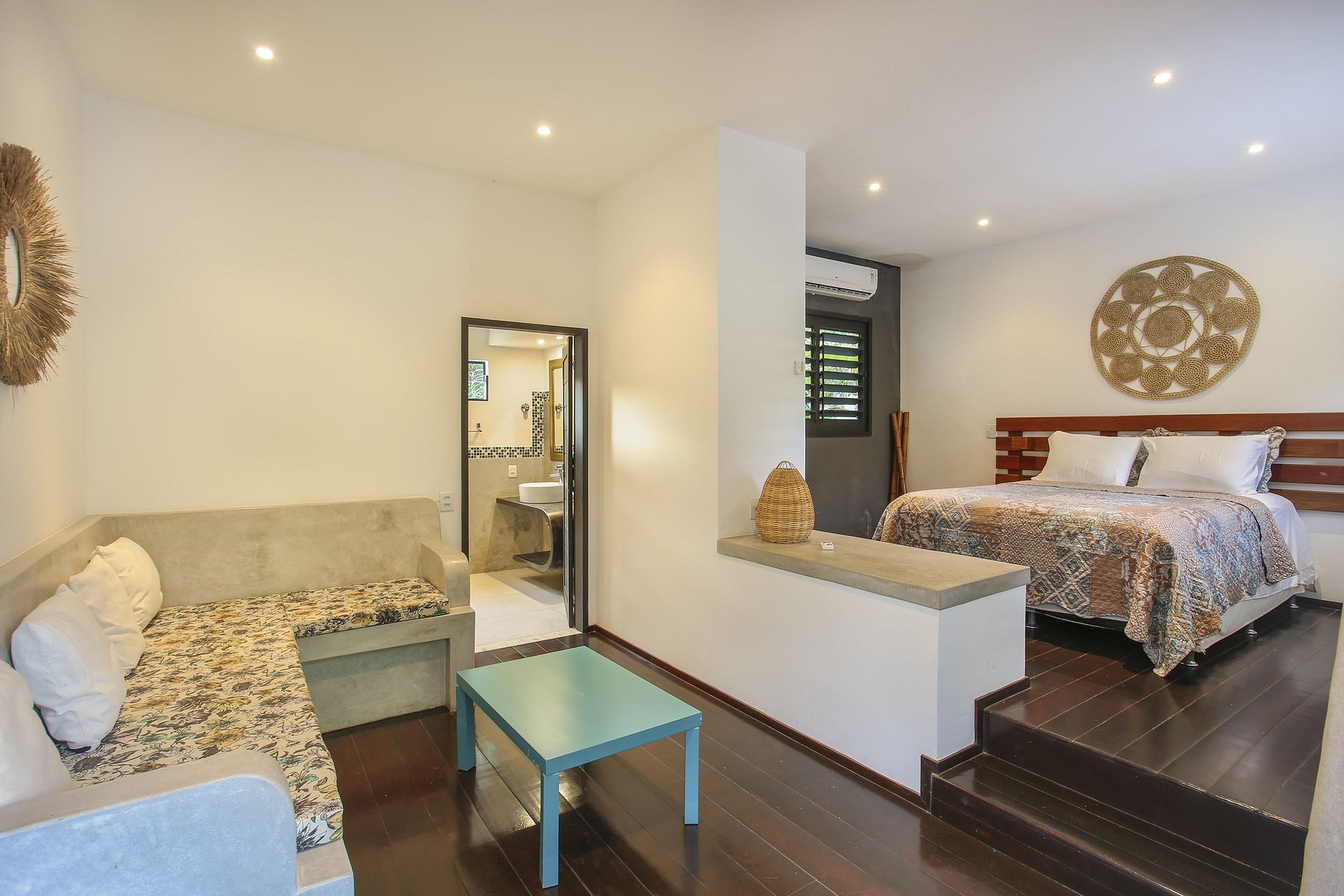 São 4 suítes ao todo, climatizadas, com camas espaçosas e confortáveis.