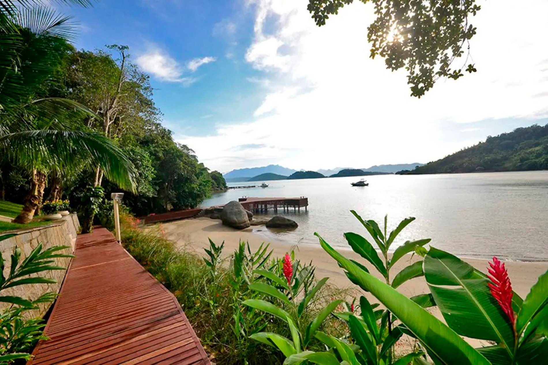 Num condomínio envolto de uma bela floresta e trilhas exuberantes, esta luxuosa casa de 2 andares, medindo 900 m² de área total construída possui área social completa, cozinha espaçosa e bem equipada, sala de tv, sala de jogos e acesso a praia privativa de águas tranquilas próprias para natação segura de adultos e crianças. Com 5 magníficas suítes, sendo 3 com camas de casal e 2 com camas de solteiro, todos os quartos possuem maravilhosa vista da baía de Angra através das grandes janelas.