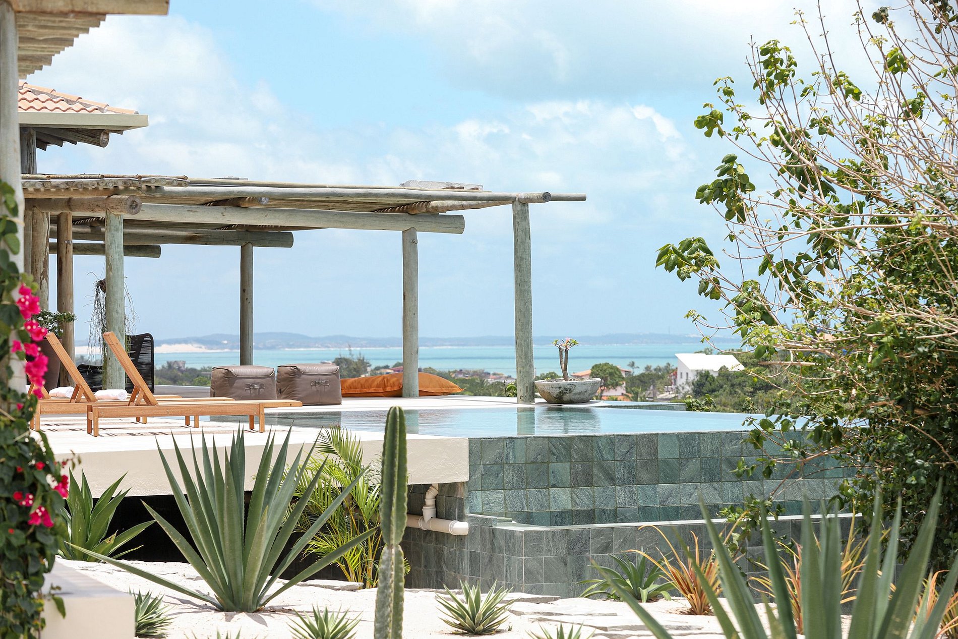 Descubra um refúgio de luxo descontraído na deslumbrante Pipa, com uma vista panorâmica de 360 graus que captura o oceano e a vegetação do Nordeste brasileiro. No centro da propriedade, uma impressionante piscina infinita se destaca, cercada por um amplo deck ao ar livre com espreguiçadeiras de madeira, ideal para desfrutar do sol ou do pôr do sol encantador.