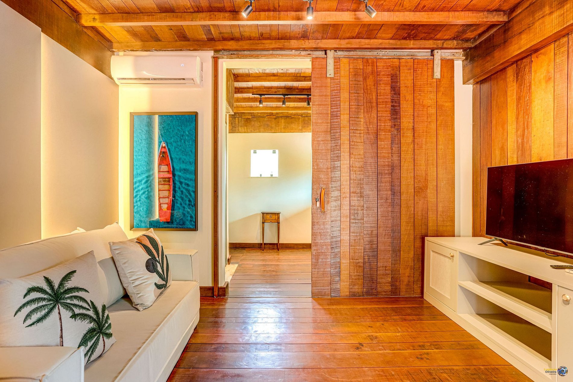 A villa foi construída visando o design de conceito aberto. Em seu primeiro andar o que se destaca é a sua grande sala de estar mobiliada com móveis planejados e decorada com a arquitetura local.