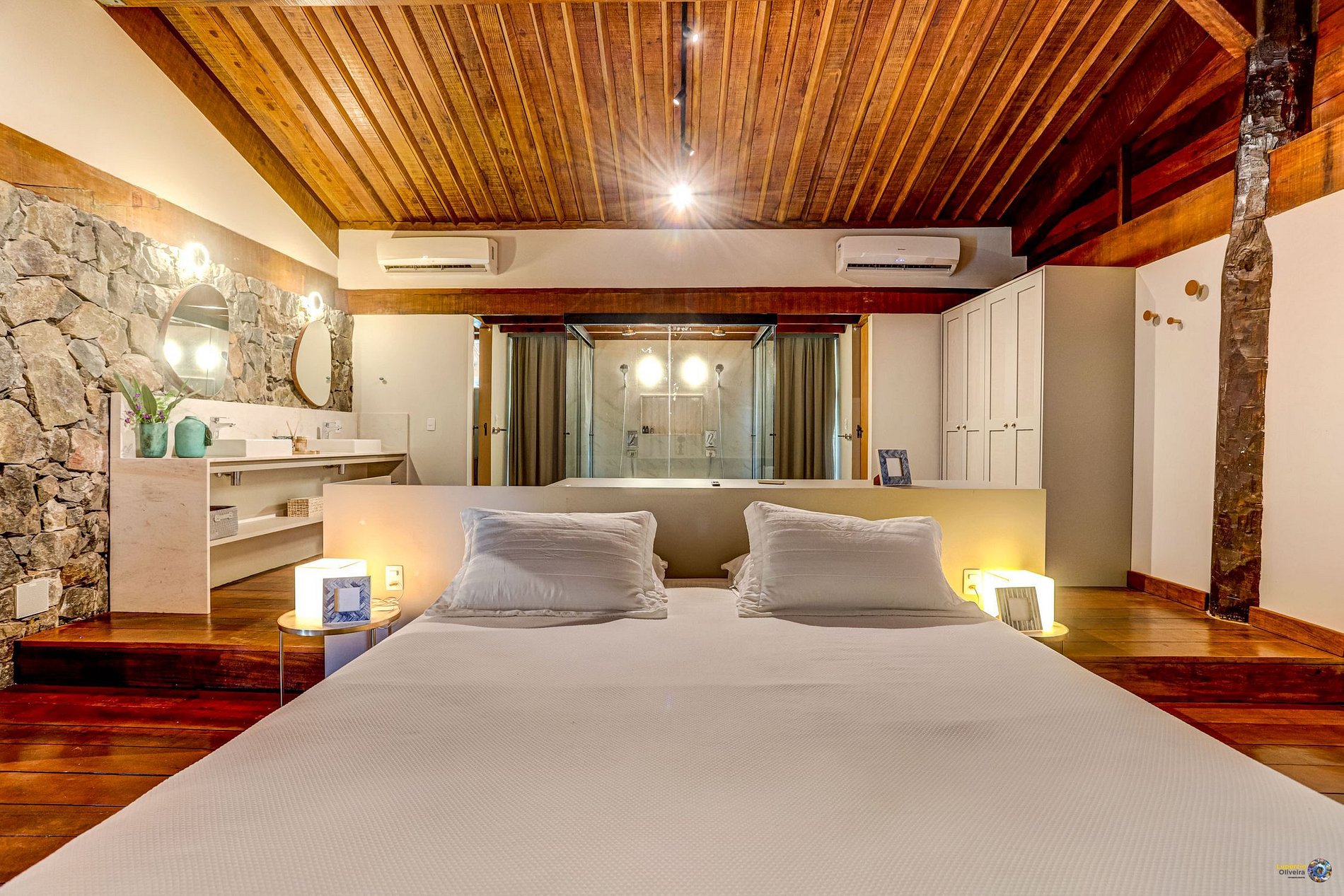 Todas as suítes são climatizadas e possuem: